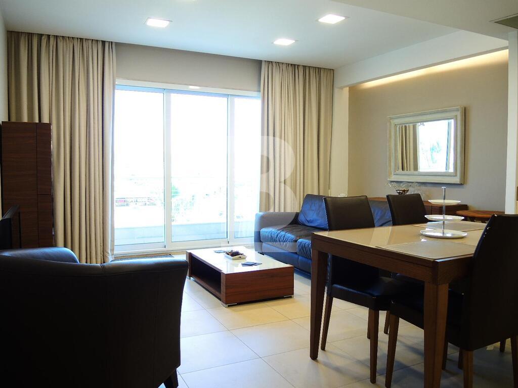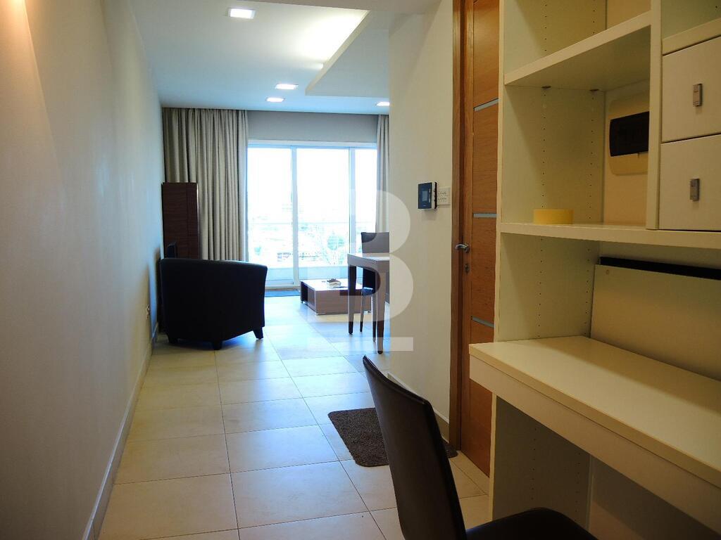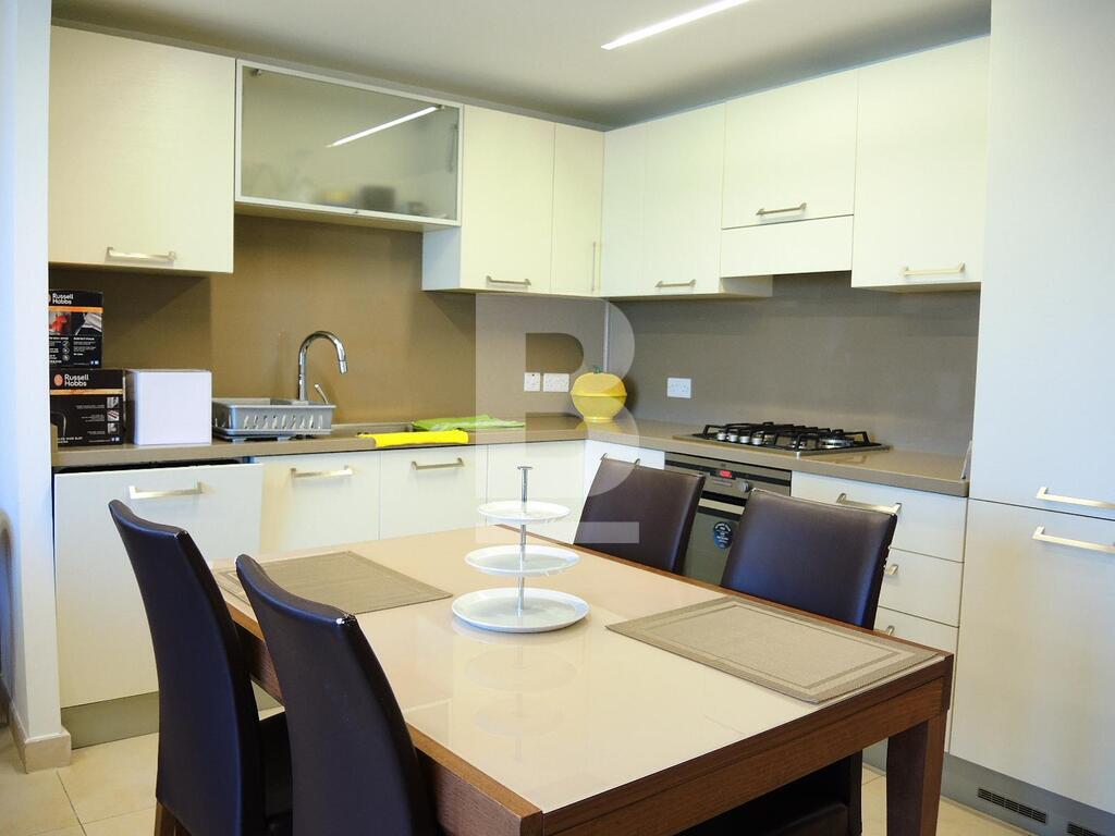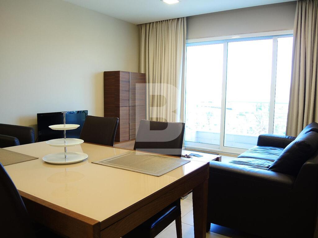 A lovely bright one bed apartment in a prime area on the 3rd floor overlooking the sea , comprising an open plan kitchen, living, dining room leading to a balcony . dishwasher, washing machine and tumble dryer . A study area in the living room with desk , a double bedroom with en-suite facilities and a small separate washroom, Flat screen TV and A/C throughout .