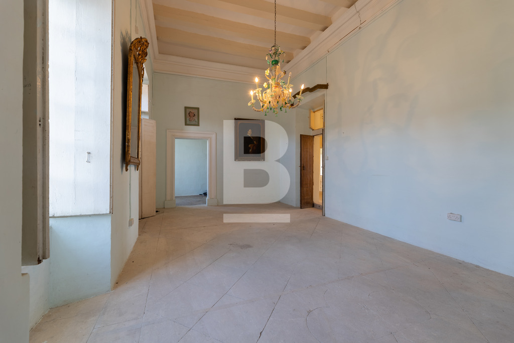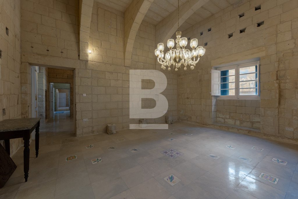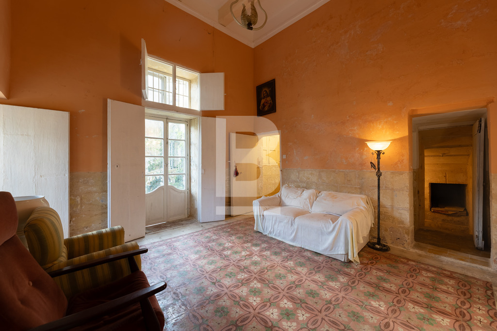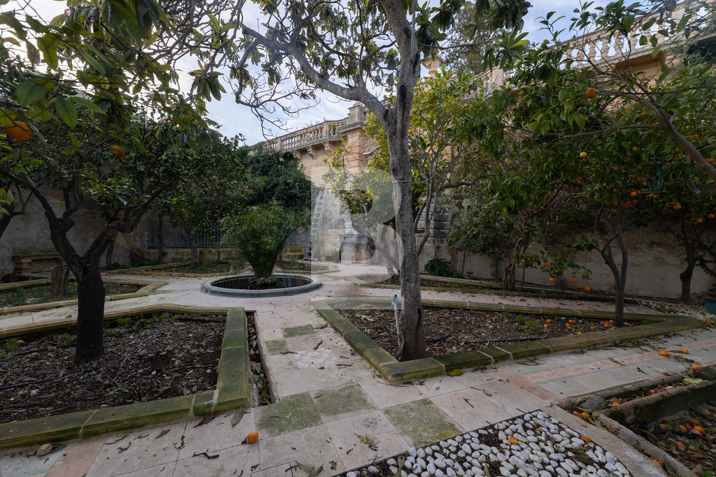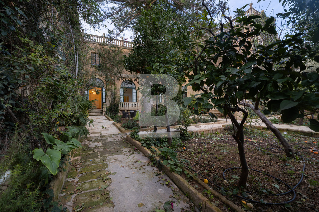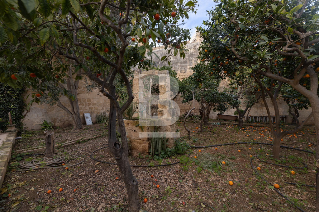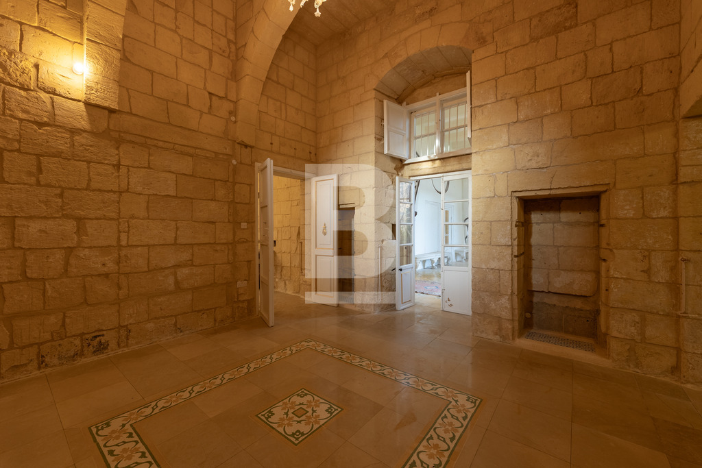 This unique, period property is located in the old village of Zebbug, designed and constructed under the order of Grand Master De Rohan as a hunting lodge, way back in the 1700s. The Palazzo has 5 entrances plus another into an annex building. The main 2.5m entrance, through an original thick two-leaf wooden door, leads to a horse carriage entrance onto a magnificent banquet hall, with four 15 foot high embedded statues, representing the 4 seasons, and 3 grand wooden / glass doors leading to the garden. The property also comprises nine rooms / living quarters, stone arched roofs, stone ovens, chimneys, and a terrace. Second floor is accessible via a fan type stone stairway and includes 6 large rooms, terraces, a grand antique living room (Sala Nobile). The garden has an area of approximately 2500sqm consisting of about 300 mainly orange trees, a very tall pine tree, gravity fed water irrigation system, original stone troughs, the 9 deep wells are replenished from rain water from roofs & street catchments. Property also has a cellar. An adjcent 2 bedroom house is included in the sale. With its blend of historic charm and versatile spaces, this partly converted Palazzo is ideal for those seeking to complete a dream home in one of Malta’s most authentic Village settings. Viewing of this exceptional Palazzo is highly recommended.