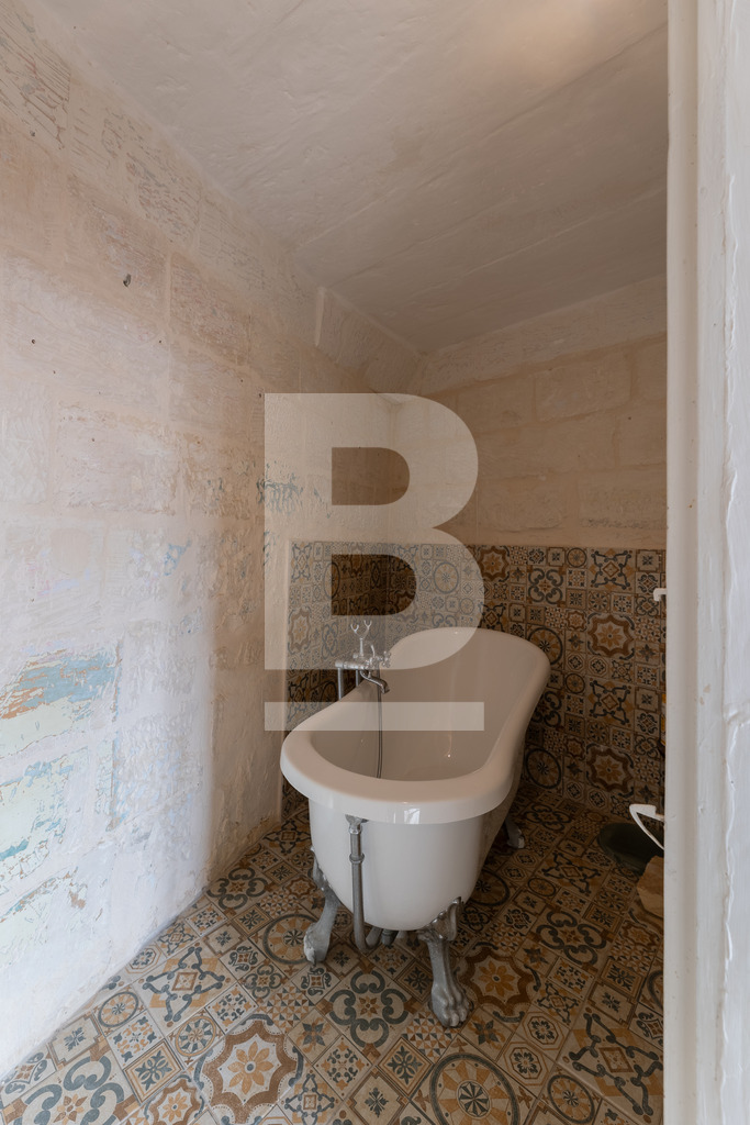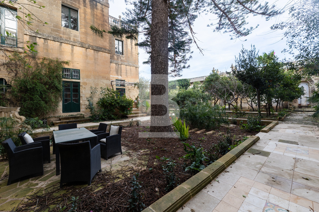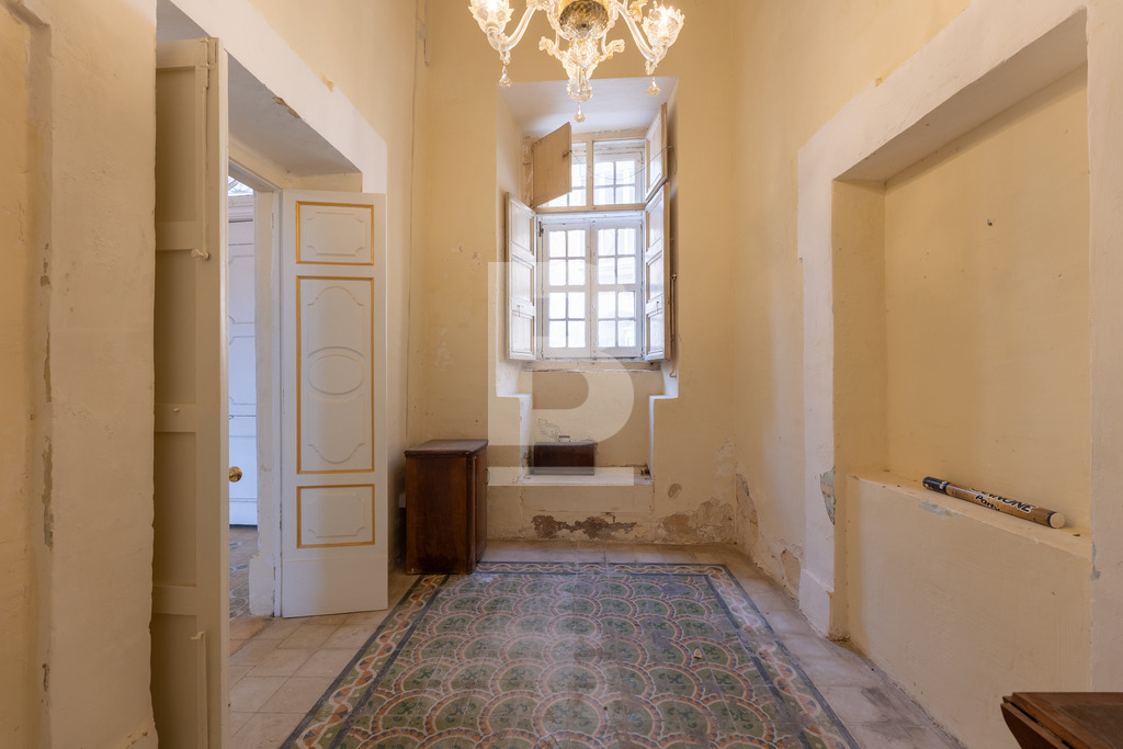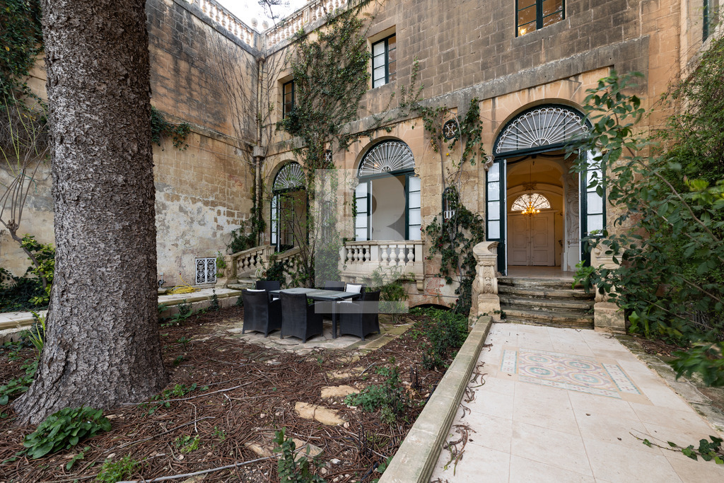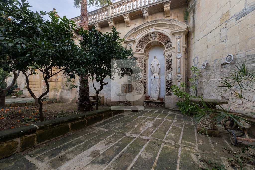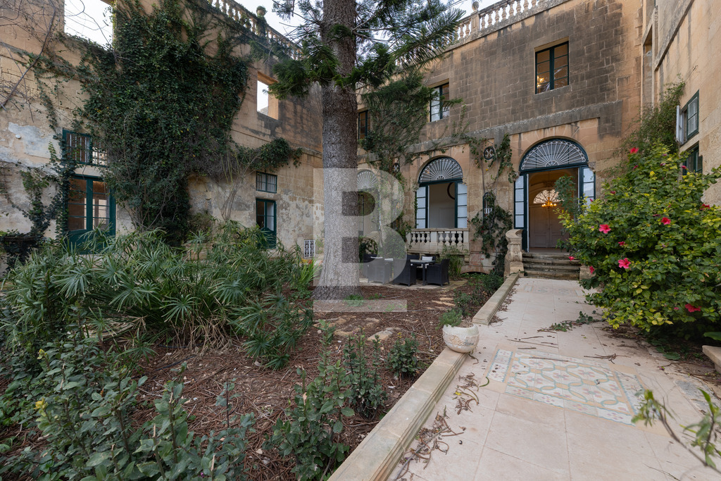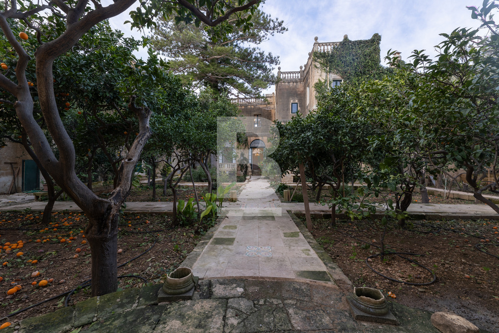This unique, period property is located in the old village of Zebbug, designed and constructed under the order of Grand Master De Rohan as a hunting lodge, way back in the 1700s. The Palazzo has 5 entrances plus another into an annex building. The main 2.5m entrance, through an original thick two-leaf wooden door, leads to a horse carriage entrance onto a magnificent banquet hall, with four 15 foot high embedded statues, representing the 4 seasons, and 3 grand wooden / glass doors leading to the garden. The property also comprises nine rooms / living quarters, stone arched roofs, stone ovens, chimneys, and a terrace. Second floor is accessible via a fan type stone stairway and includes 6 large rooms, terraces, a grand antique living room (Sala Nobile). The garden has an area of approximately 2500sqm consisting of about 300 mainly orange trees, a very tall pine tree, gravity fed water irrigation system, original stone troughs, the 9 deep wells are replenished from rain water from roofs & street catchments. Property also has a cellar. An adjcent 2 bedroom house is included in the sale. With its blend of historic charm and versatile spaces, this partly converted Palazzo is ideal for those seeking to complete a dream home in one of Malta’s most authentic Village settings. Viewing of this exceptional Palazzo is highly recommended.