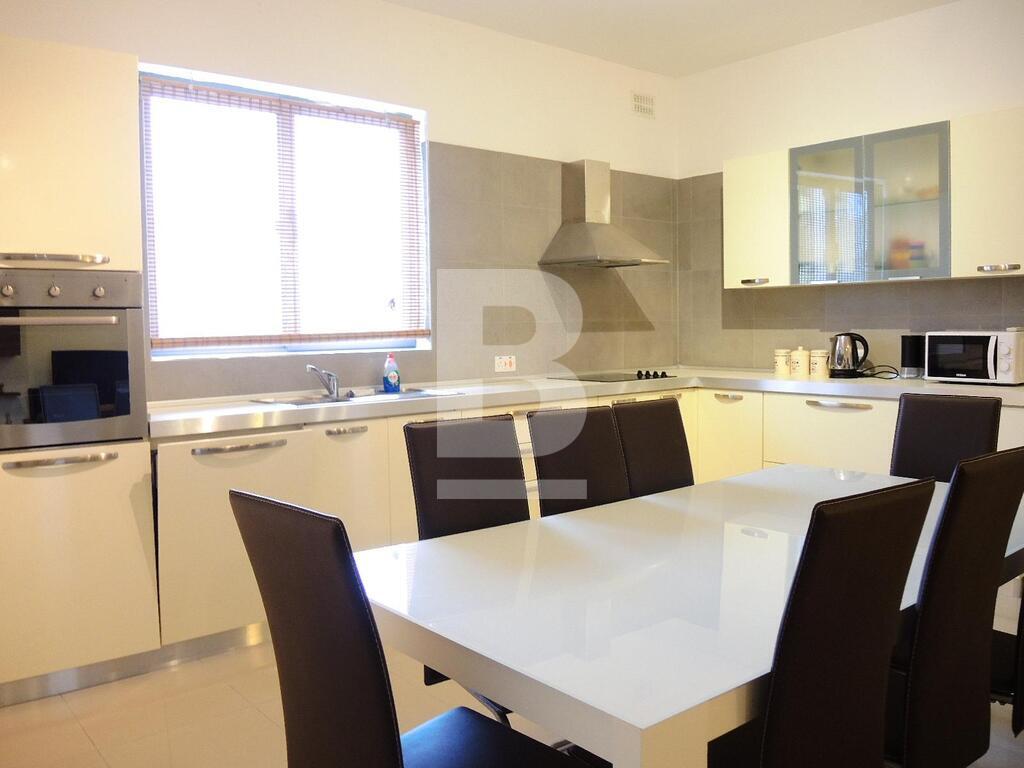 A well finished and furnished apartment situated in this quiet residential area. Accommodation consists of entrance hall, spacious kitchen/living/dining room, 3 bedrooms (main with en-suite), bathroom and a laundry room. Property also includes air-conditioning, plasma television, washing machine tumble dryer, intercom and lift.