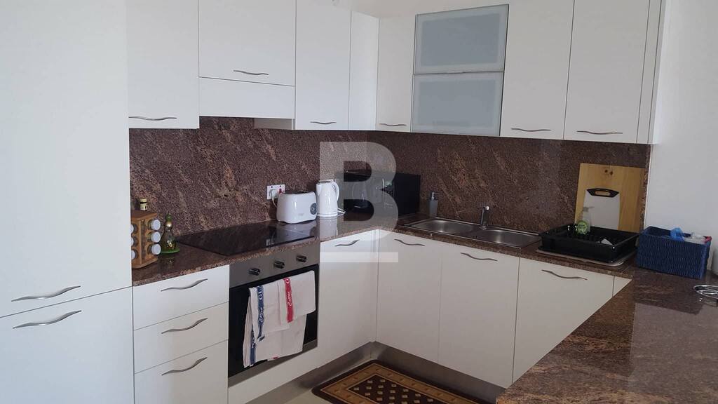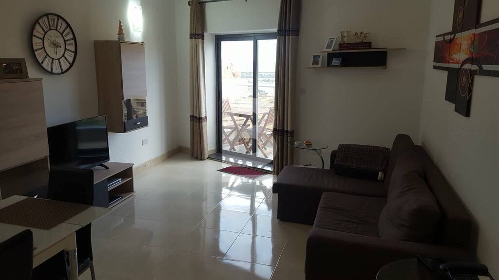 Very bright 2 Bedroom furnished apartment situated in the centre of Mellieha close to all amenities. Property consists of an Entrance Hall, a spacious open-plan Kitchen / Sitting / Dining, 2 Double bedrooms (one with ensuite) and Guest toilet. This property is fully airconditioned, has use of Lift and WIFI and Telephone are also included in the price. Complementing this property is a Front Balcony enjoying sea views and also views of Comino and Gozo.