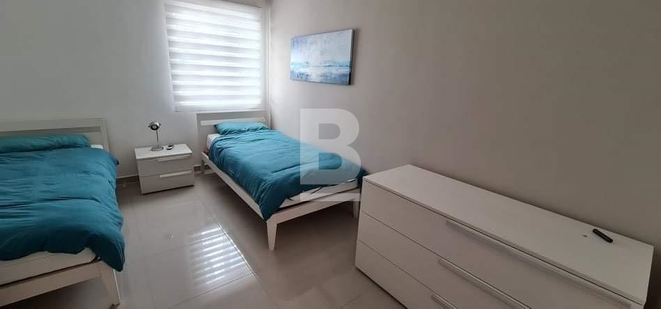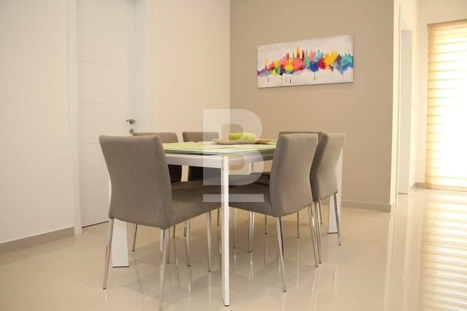 A very bright and well finished three bedroom apartment with a spacious terrace large enough for a table and chairs. This 110 sqm apartment is very well finished with quality furnishings and consists of a large open plan Kitchen, living and dining area, laundry room, Main bathroom and three double bedrooms (main with en-suite). The apartment is air-conditioned throughout and enjoys open views.
