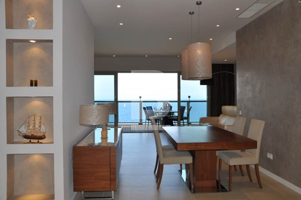 Forming part of this prestigious development in the heart of a much sought after area of the island is this luxury sea front apartment. This property enjoys a fantastic layout, comprising of an entrance hall, a spacious and combined kitchen / dining / living leading onto a sizable front terrace which is ideal for relaxing and where one can enjoy pleasant open sea view, as well as the entrance to the grand harbour. Accommodation comprises of three bedrooms, two bathrooms (one with en suite), guest toilet and laundry room. Finished to the very highest of standards this is a home away from home and viewings are highly recommended. All amenities are included, as well as underlying parking which includes 1 car space, washing machine, dishwasher, air-conditioning throughout and 2 LCD TV's (one in bedroom and one in living area).