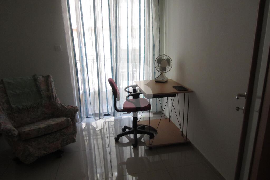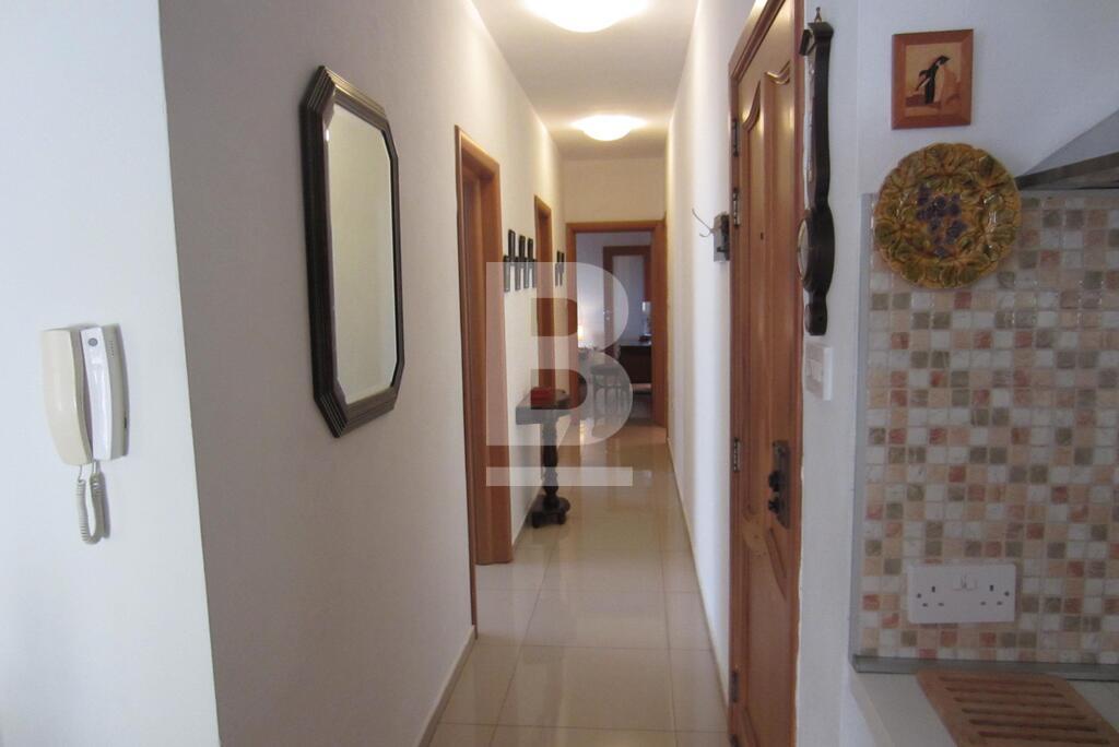 A nicely finished, fully-furnished apartment forming part of this smart block, centrally located and just minutes away from seafront. Property comprises a spacious and bright living / dining area equipped with air-conditioning units, kitchen and 2 balconies enjoying side sea views, 1 double bedroom (main with en-suite facilities and air-conditioning units), 1 single bedroom with balcony, 1 study room and a main bathroom. Also including flat screen TV, washing machine and tumble dryer.