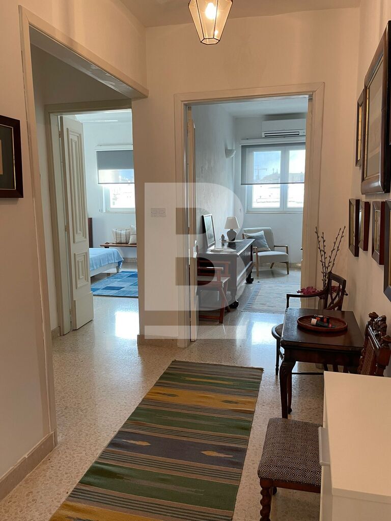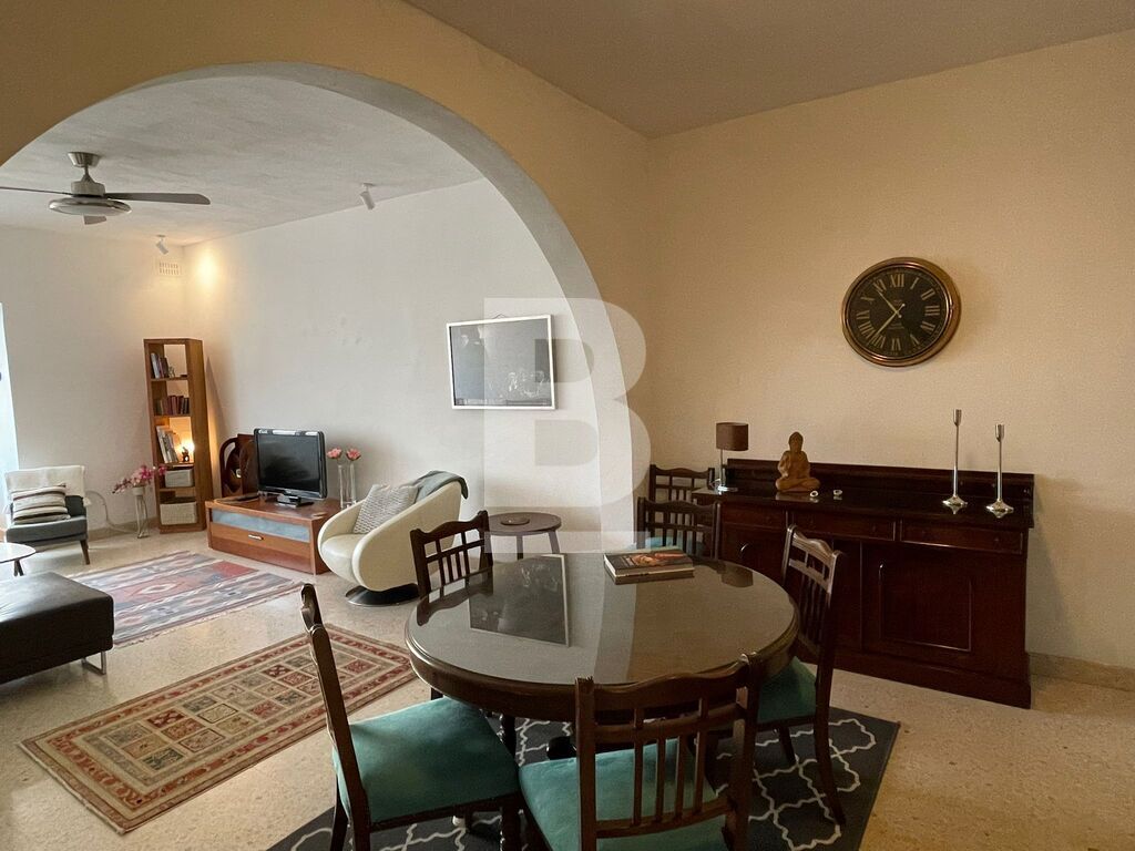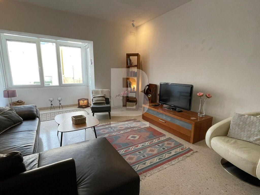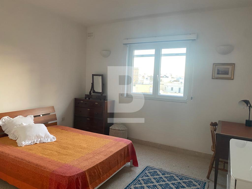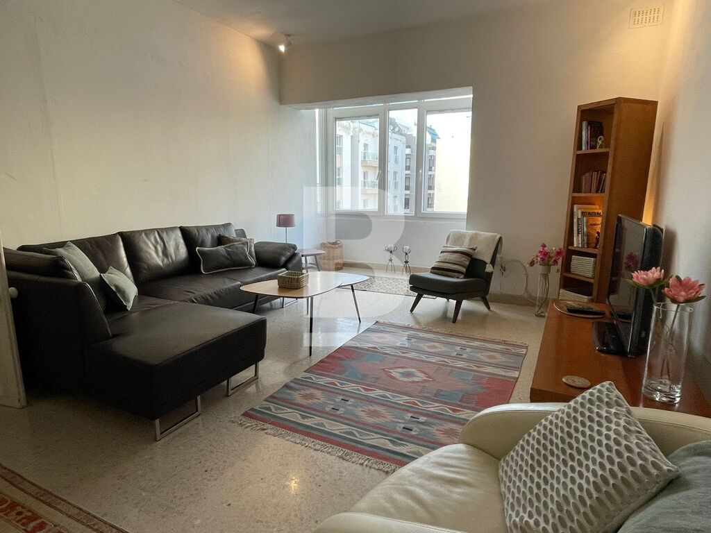 Bright and spacious 4th-floor apartment within an elegant and immaculately maintained modern block located just off the Sliema seafront. Accommodation comprises a central entrance hallway, living/dining with enclosed balcony enjoying side sea views, kitchen/breakfast with balcony also enjoying side sea views, 2 double bedrooms - master with ensuite, and a large main bathroom. This property has large rooms with high ceilings and gorgeous natural wood internal doors, air-conditioning in all rooms, double glazing plus insect screens. It includes a few quirky pieces of furniture, making this an ideal home for people who appreciate the mix of modern and heritage.