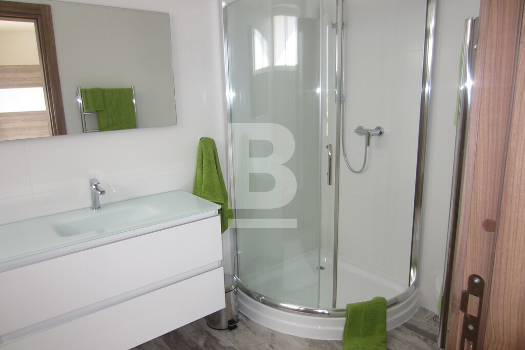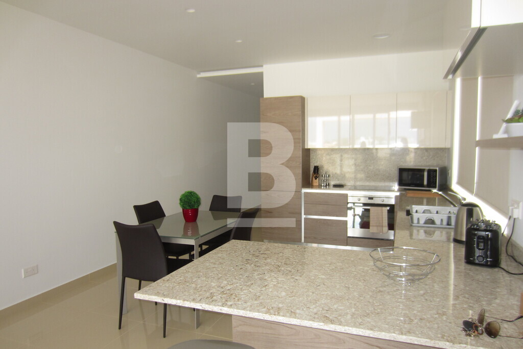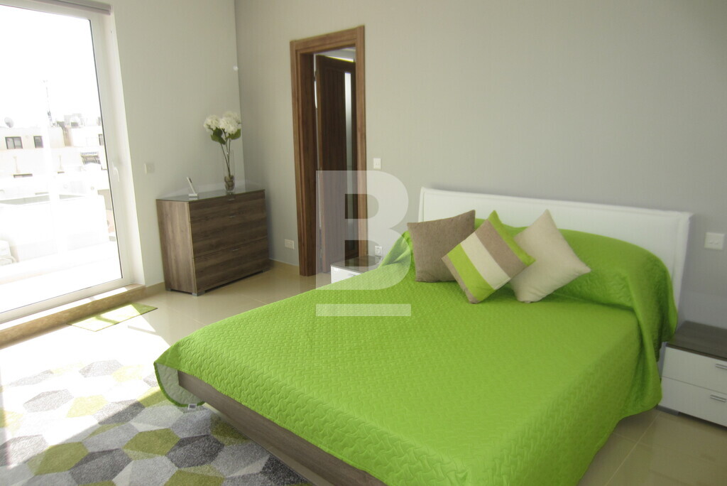 A stunning penthouse forming part of a smart block of 3 situated within walking distance to all amenities. Accommodation comprises of an open plan, fully equipped kitchen / living / dining leading onto a lovely spacious terrace perfect for entertaining, 2 bedrooms both with en-suite showers and baths, one main bedroom leading onto a well sized back balcony with far reaching views and a guest toilet. Property is fully equipped with air-conditioning units and also includes washing machine, dishwasher, TV, lift, intercom and alarm system. Well worth viewing.