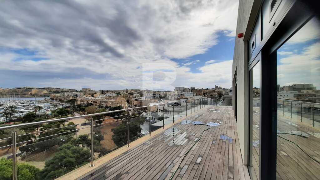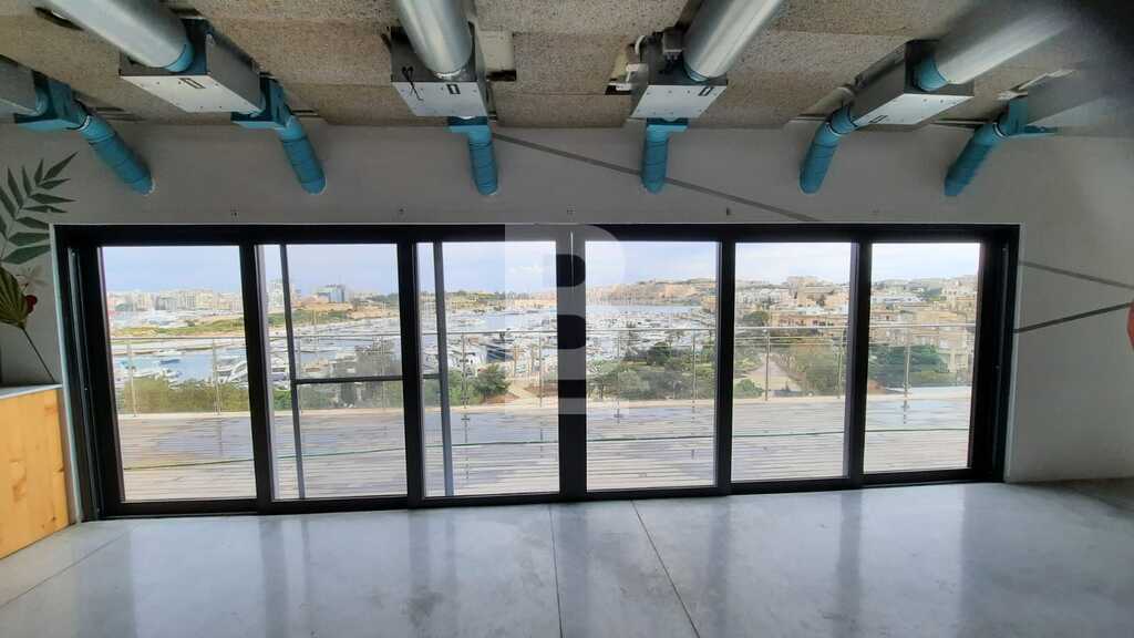 Brand new corner business centre commanding lovely views of Ta’ Xbiex marina, Manoel Island, Valletta and sea. Spread over six floors of mixed commercial use this business centre has lovely lobby area, communal toilet facilities, parking within the building, two large passenger lifts, stand by generator and will be finished to highest specifications. This office is on the penthouse level and has 630sqm internally and 331sqm externally. This is a one of a kind penthouse level office.