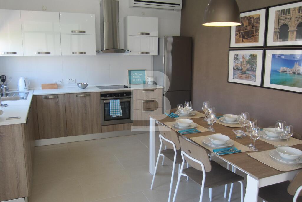 Luxury apartment forming part of this smart up market block, close to the lovely St. Julians promenade and all amenities. Property comprises open plan fully equipped kitchen / living / dining area leading to a front terrace, 3 bedrooms with the main having en-suite facilities (2 double and 1 twin), main bathroom and separate laundry room. Fully equipped with air-conditioning units and includes flat screen TV, washing machine and dishwasher. Also included is one car space. Must be viewed!