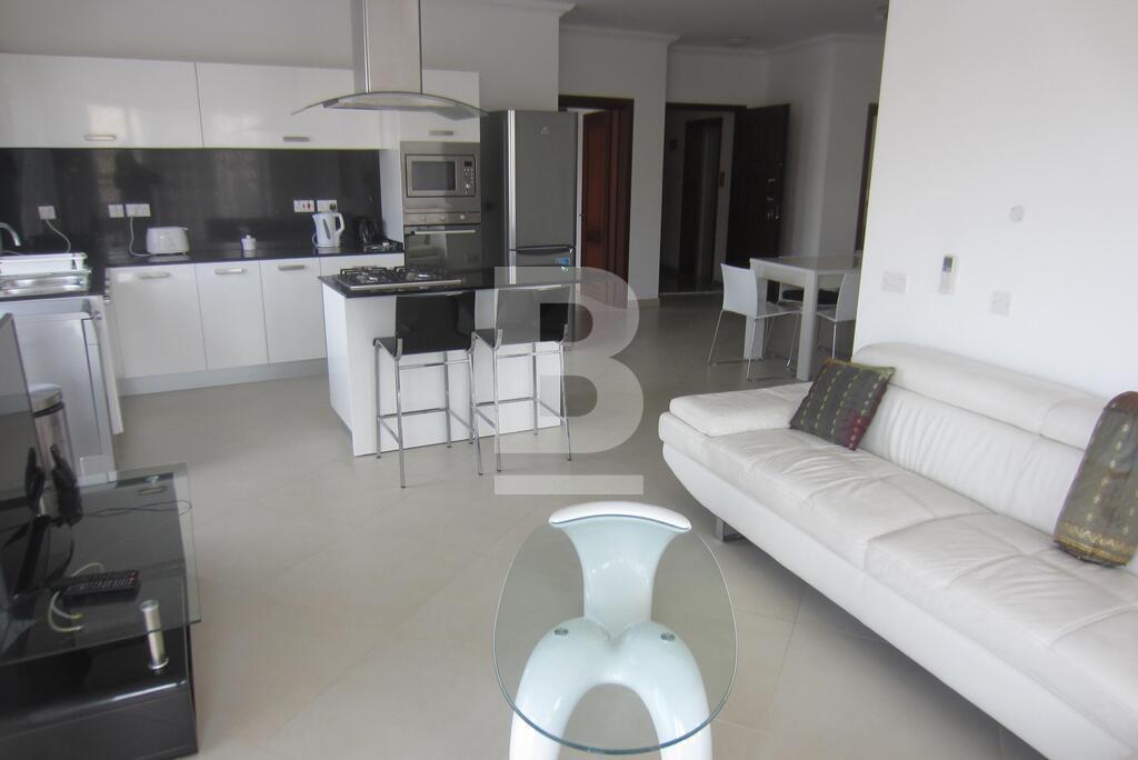 Modern, highly finished and fully furnished apartment located in this sought after, prime location, right across from the lovely St. Julians promenade, all amenities, cafes, restaurants and public transport. Property comprises of open plan (fully equipped) kitchen / living / dining area leading to a spacious terrace enjoying breathtaking sea views. 2 double bedrooms, 2 bathrooms (main being en-suite). Air-conditioned, flat screen TV, washing machine and dishwasher. Must be viewed!