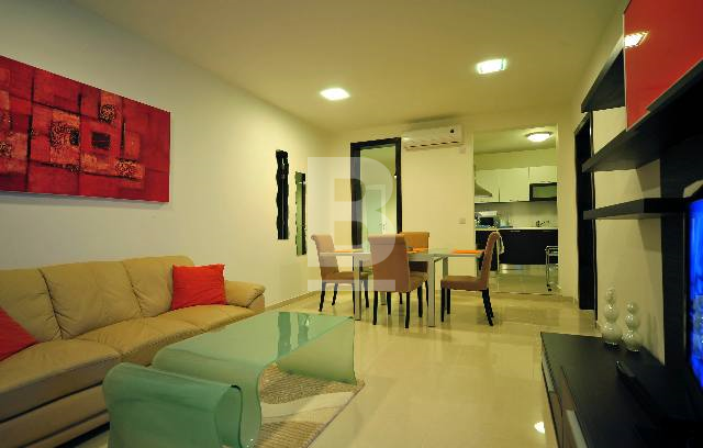 A highly finished, fully furnished, two bedroom maisonette located close to Portomaso. Layout consists of a modern and spacious kitchen/living/dining, two double bedrooms (both with an en-suite), and a small yard. Viewings are highly recommended.