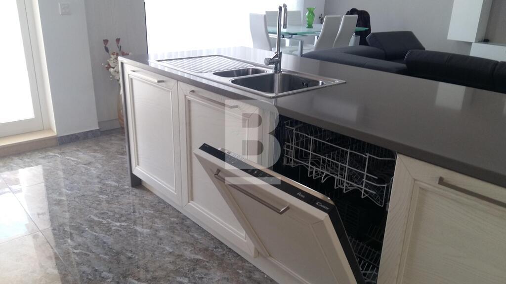 The block of apartments has a large entrance and there are 2 lifts. The apartment is situated on the first floor and has a lovely open plan kitchen / living / dining area. There are 3 bedrooms, one double with shower en-suite facilities, twin room and a large single room, separate bathroom and a front and side balcony. The property is fully equipped including washing machine, dishwasher, tumble dryer, microwave, fridge-freezer and air-conditioning. Excellent location, just around the corner from Greens supermarket. Car space included.