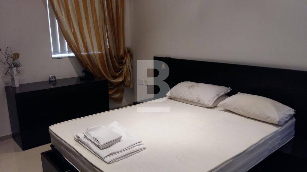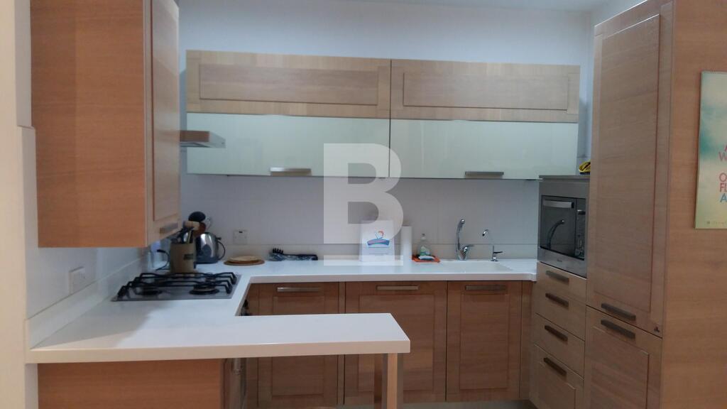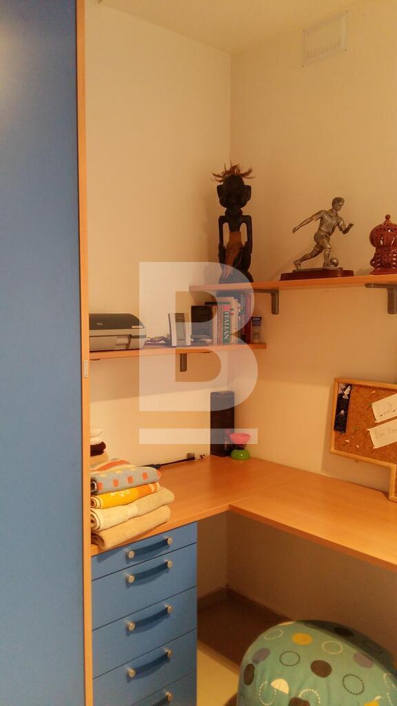 Main bedroom with en-suite, second bedroom with possibility of twin bed, main bathroom, study with double sofa bed, open plan kitchen/dining/living. It has 3 balconies, 2 of which have sea views. It contains all the basic amenities.