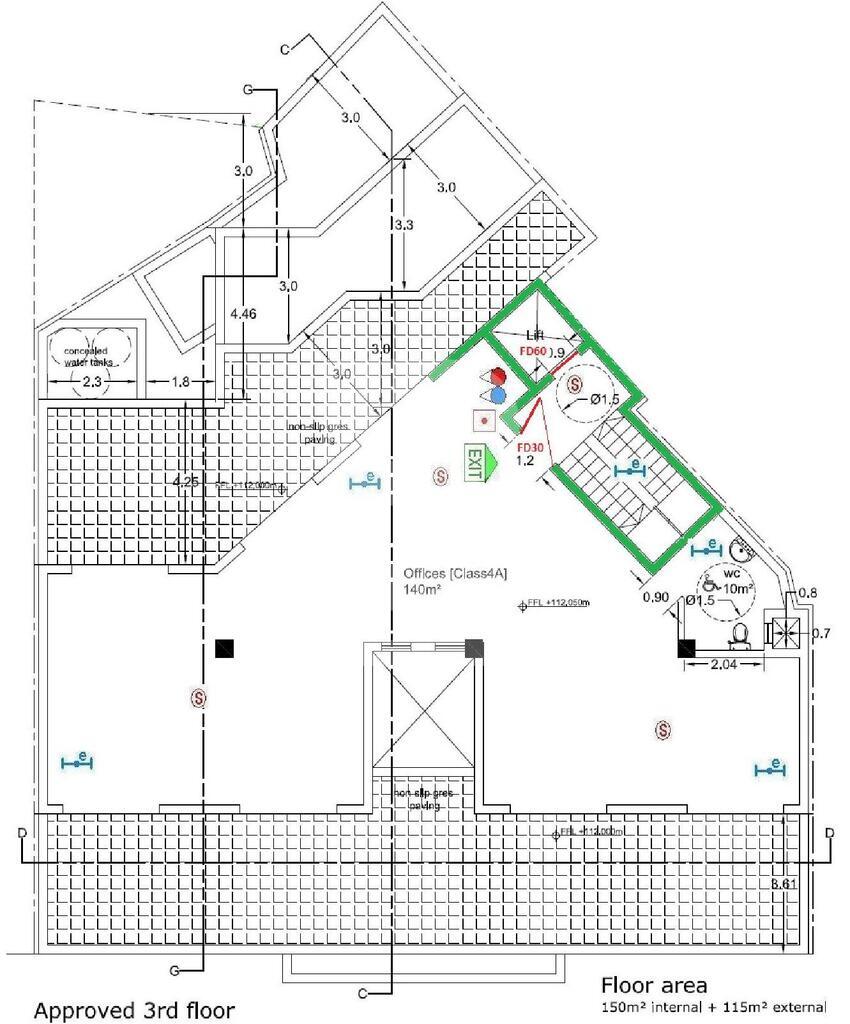 A very recently refurbished 155sqm penthouse office in an excellent well location and on a main bus route. The 4th floor the office is highly finished with tiles, soffit ceiling, Ac's, 30 data points and 30 electrical points plus 2 toilets and a small kitchenette. The premises are well lit and have two larege front and back terraces. The office is also equipped with an intruder alarm, fire alarm and intercom. 2 optional car spaces are available. Highly recommended.