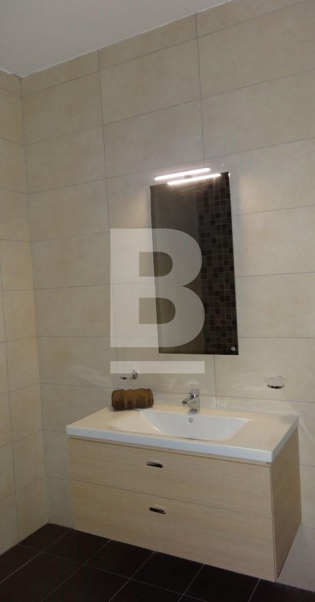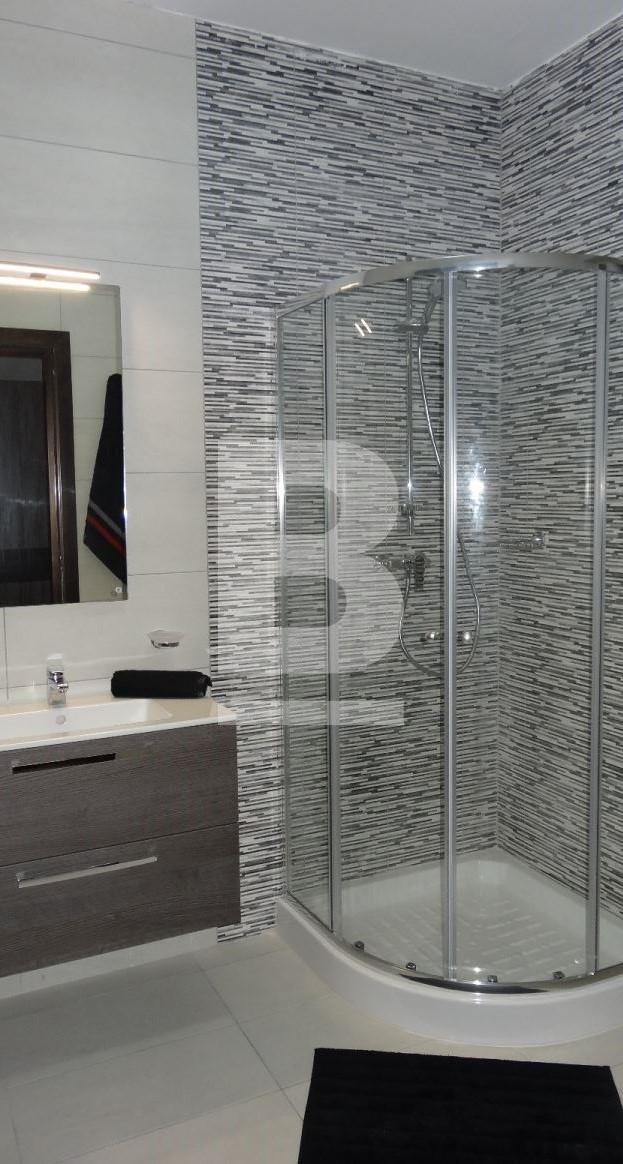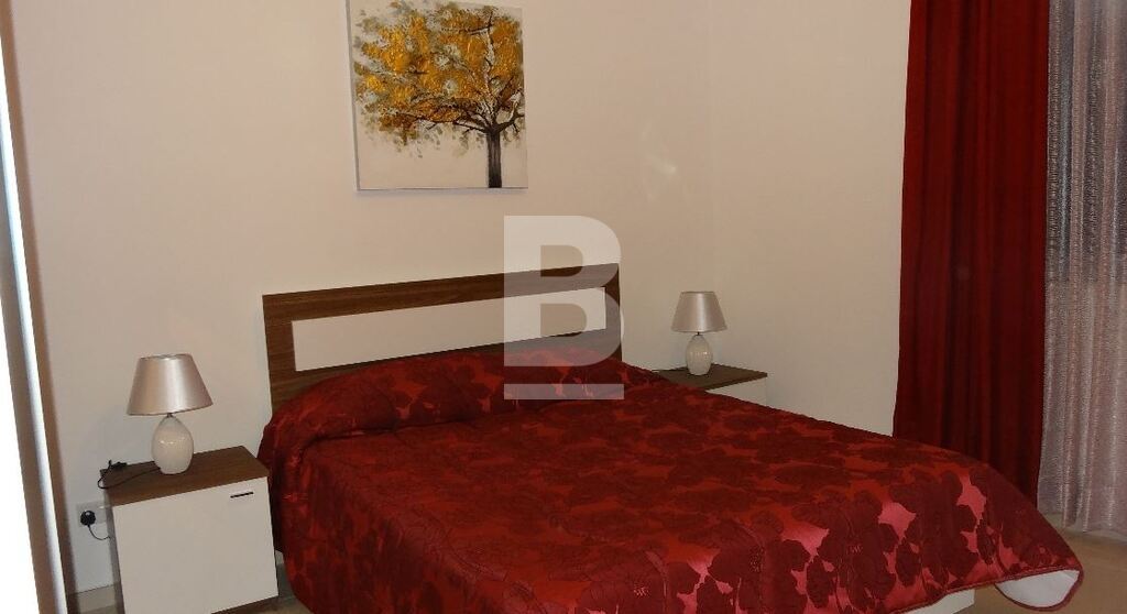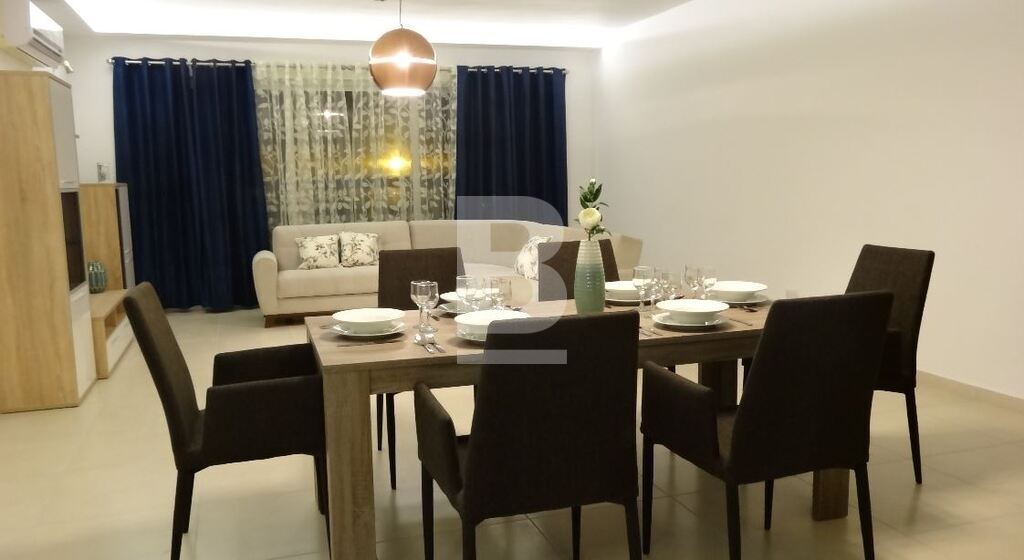 he apartment is quite spacious and comprises of a good sized hallway which leads to an open kitchen/living/dining area. It has three bedrooms, one of which has an ensuite bathroom. One of the bedroom is not furnished at the moment so a potential tenant can furnish it according to his needs as another bedroom, office, etc. The property comprises also of another bathroom and a laundry/box room including an automatic washing machine and tumble dryer, and also a good sized veranda enjoying distant sea views. All bedrooms and living room have air-conditioning units and the kitchen is finished with all appliances including a micro-oven and dishwasher. The tenant also can take up an optional lock-up garage. It is important to note that the basement of the property is interconnected with the parking area of the Green's supermarket.
