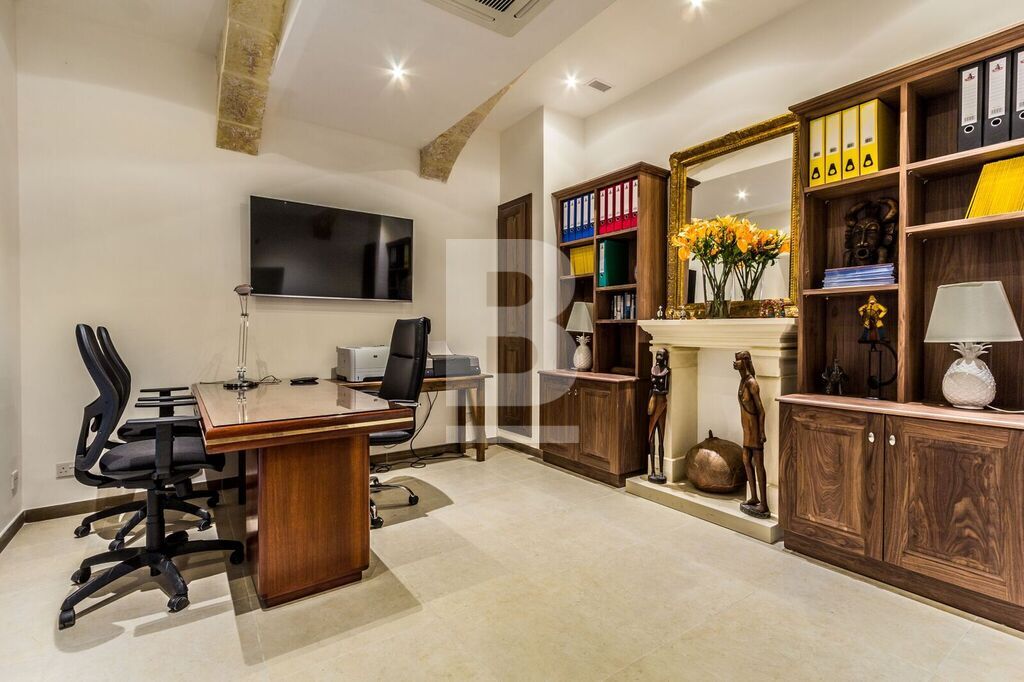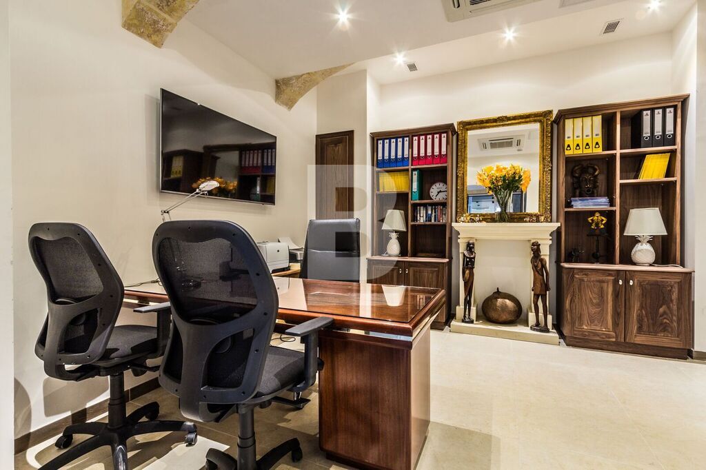 Set within Valletta's prominent Business & Commercial Centre with unrivalled connectivity, is this lovely Palazzo, converted to the highest standards and offered as high end office space. Exceptionally designed over four (4) levels plus a stunning communal roof terrace this circa 600sqm space has a versatility and style that is not often found. This property is flooded with everything that complements its uniqueness ..... natural sky lighting, vault hallways, timber flooring, stone workmanship, ornate ballustrades, the list is endless. And for a subtle touch of modernisation & convenience, state of the art under floor heating, air conditioning throughout the levels and a sophisticated CCTV System. Ultimately, this grand office is something to be highly considered!