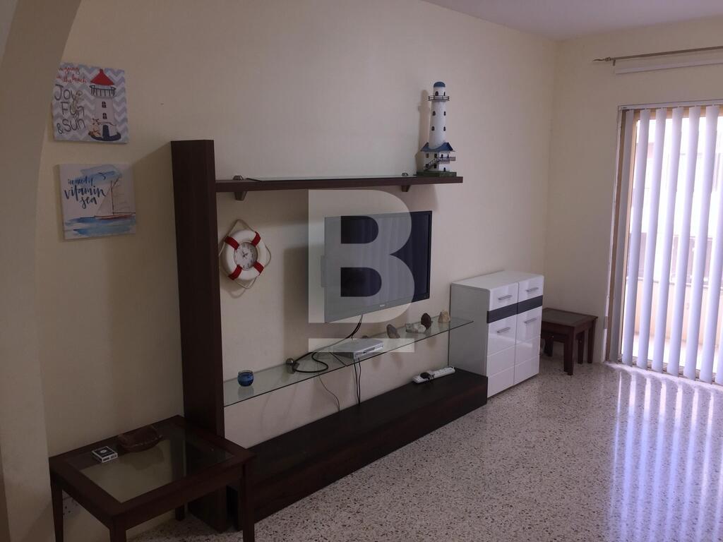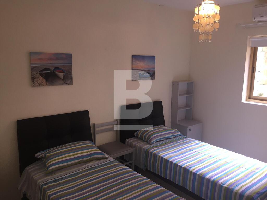 A spacious apartment located in a lovely residential area in Mellieha bay. Property comprises of a large open plan kitchen / living / dining area with a 40 inch LED TV with cable TV (included in price) and high speed internet (not included in price), 3 bedrooms, i.e. double room, twin room and one single. In addition there are 2 bathrooms, a front balcony and use of roof with sea views over the bay. Property is fully furnished and air-conditioning units throughout.