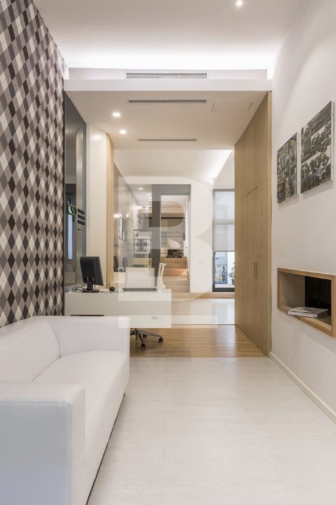 Very well planned and designer finish office full of character in a central part of Gzira close to all amenities. This office measures 80sqm accommodating around 10 desks with a fully equipped kitchen and eating area, an archive room, toilet with shower and internal yard. Property is equipped with fibre optic cable supply, air-conditioning and wall insulations.