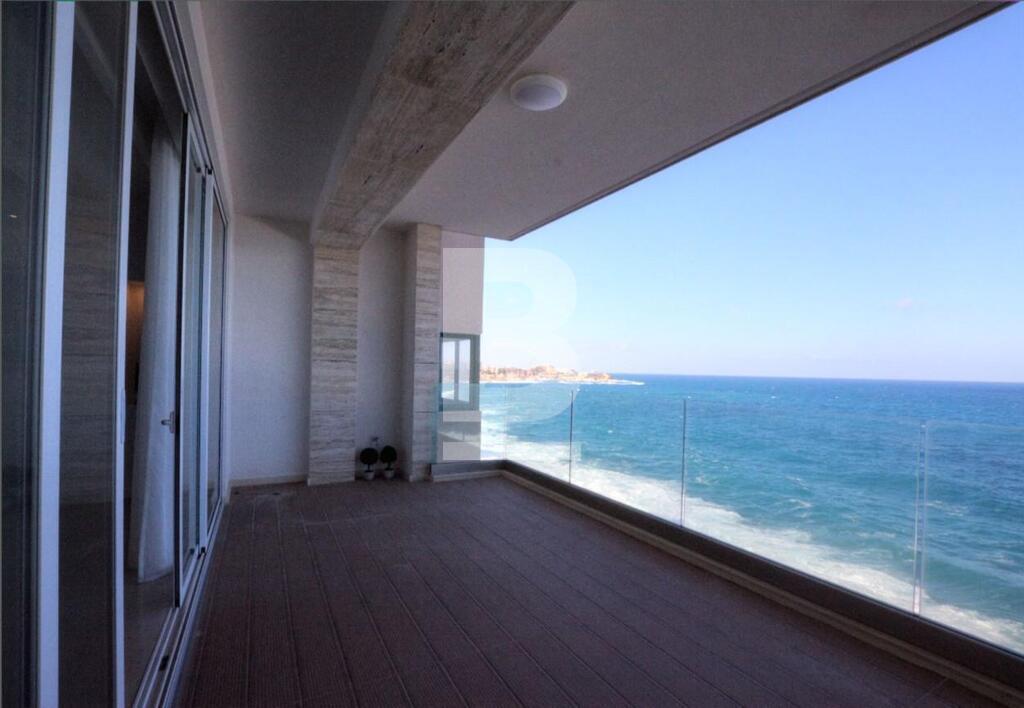 Luxury 5th floor seafront apartment, excellently located with fantastic open sea views, featuring a very large terrace overlooking the Sliema promenade. The property also features a brand new fully-equipped designer kitchen, an open plan living / dining leading to a large terrace. Property consists of 2 bedrooms (main with en-suite facilities), a separate guest toilet and back balcony. Also including washing machine and dishwasher. A single car-space is also included.