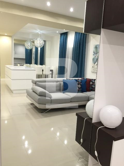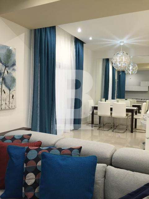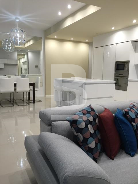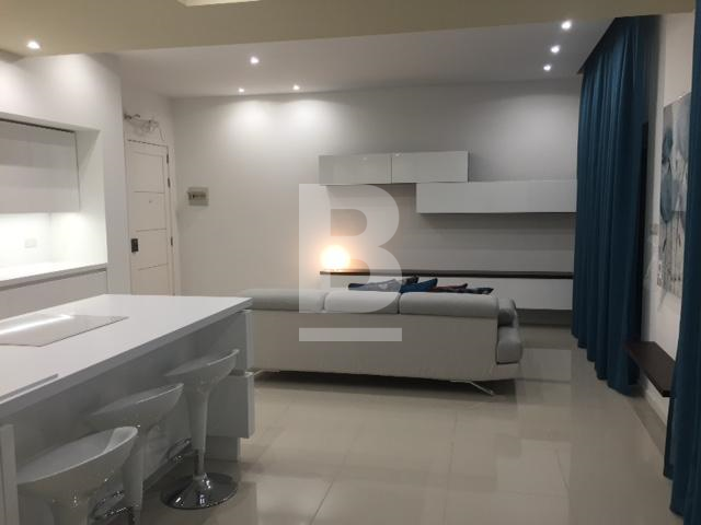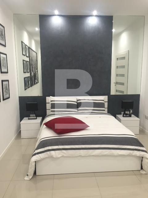 Very well furnished and fully air-conditioned 2 bedroom modern apartment, situated in St Julians only a short walk away from Spinola Bay and Balluta Bay and from the lovely promenade, cafes, restaurants, all amenities and close to public transport. On entering the property, one finds a combined fully equipped, modern and new kitchen / living / dining area tastefully decorated. The living / dining area both lead onto a very spacious shaded yard perfect for entertaining and enjoying some privacy. A corridor leads on to a guest toilet including a shower, a very large master double bedroom together with a roomy en-suite and walk in wardrobe, and to a second double room with a 2x2m backyard. Extras include lift, washing machine, TV & video hall porter.
