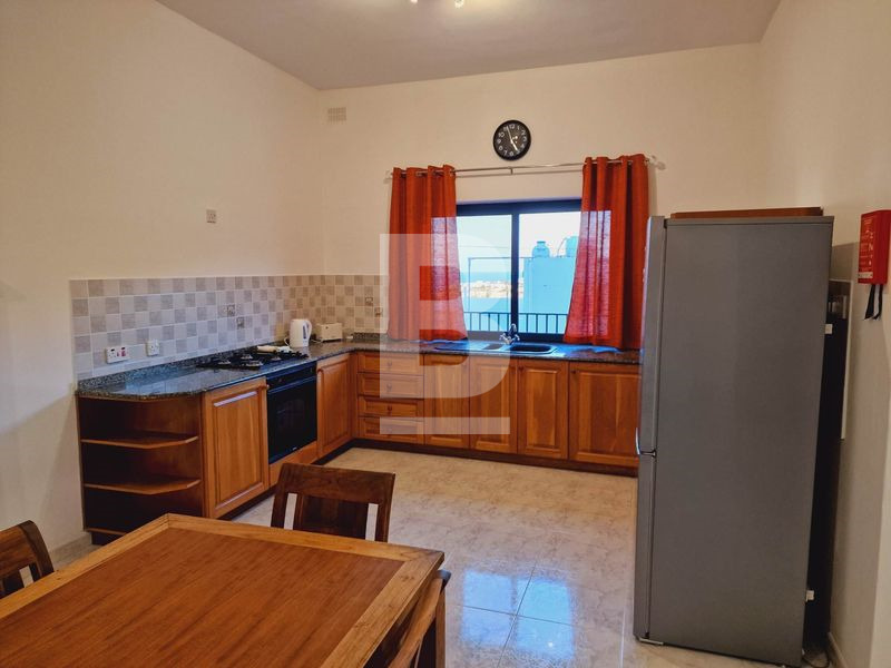Fully furnished, bright 3rd floor apartment located in a quiet, residential area overlooking Mellieha bay.The flat consists of an open plan kitchen, living and dining with modern appliances, a double bedroom and large balcony with amazing views. A large communal rooftop terrace is also accessible.