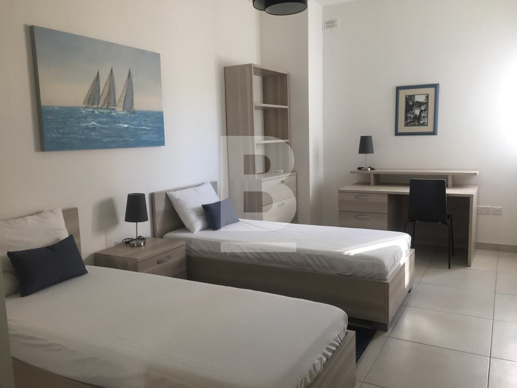 Beautifully finished apartment just off the sea front in Sliema very close to Vecchia Napoli. The apartment comprises 2 doube bedrooms (main with en-suite), and the third bedroom can be used as a study or bedroom, main bathroom. The kitchen / sitting / dining area is an open plan and that leads to a large terrace that fits a table and 6 chairs. The property is fully air-conditioned and equipped with washing machine, dishwasher and tumble dryer. Garage is included.