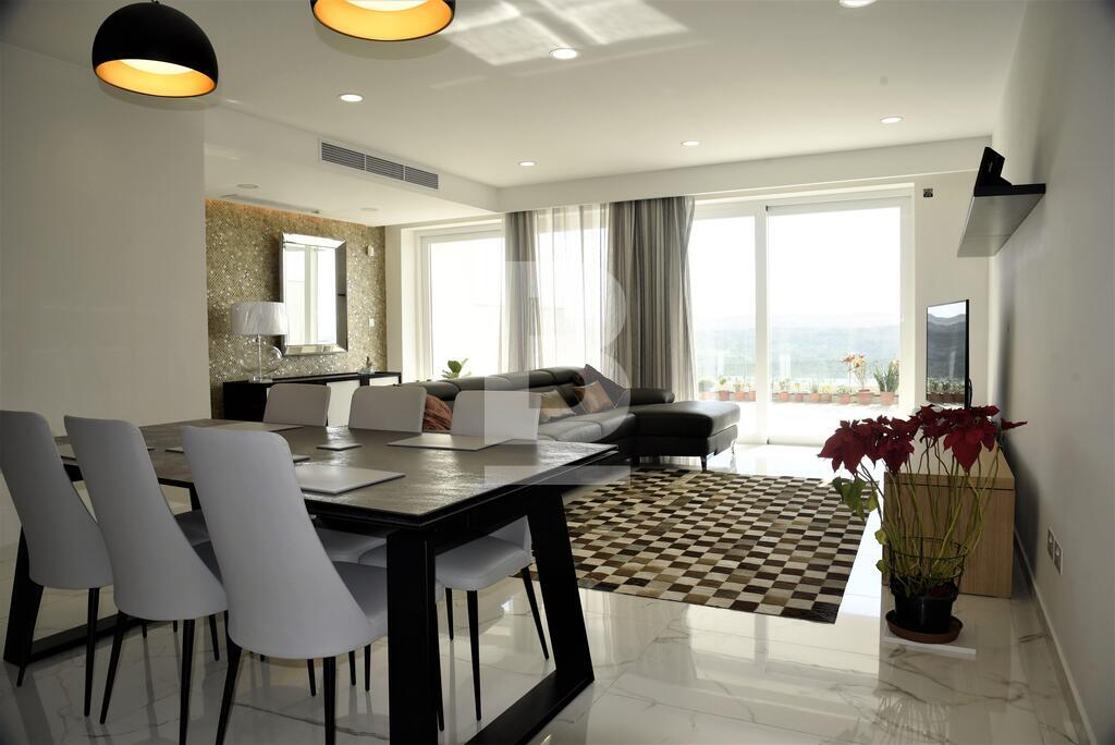 A 4th floor 221 SQM apartment forming part of a smart development in Mellieha enjoying fantastic country and sea views. This apartment has been finished to high standards and includes 3 double bedrooms, 3 bathrooms, a dedicated walk-in wardrobe, back terrace, Miton kitchen with glass panels & quartz top and a spacious living/dining area that overlook a large terrace enjoying unobstructed country and distant sea views. Complimenting this property are additional features such as, intelligent lighting throughout, security cameras, intruder alarms, lock up garage and Wi-Fi throughout.
