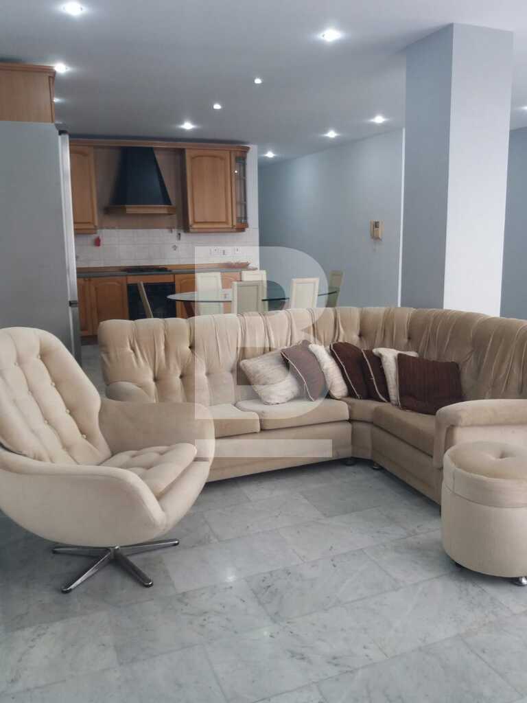 A spacious first floor apartment, situated in a cul-de-sac, close to the football ground. Property consists of a living with fireplace, large kitchen/ b'fast, 3 bedrooms, all with parquet flooring, main bathroom and a small balcony. Air-conditioning and a washing machine also complement this apartment.