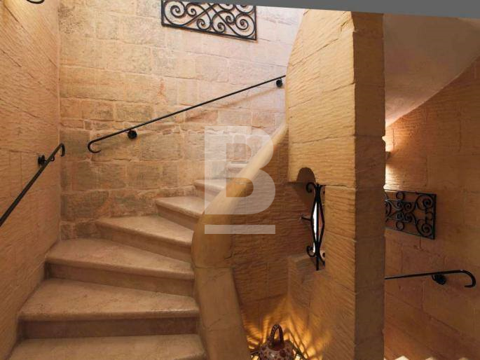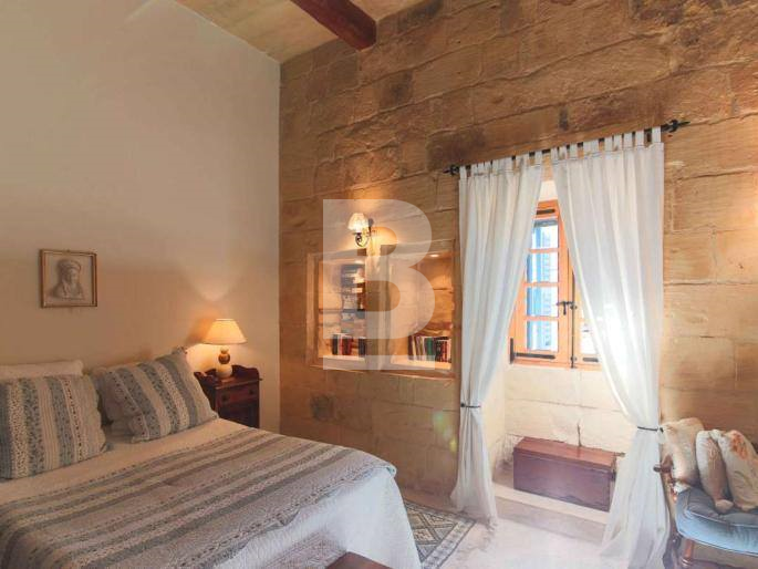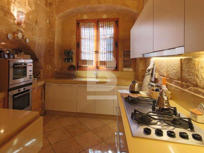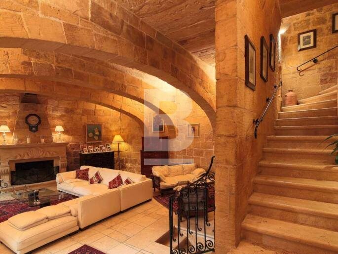 An expertly converted 400 year old, 4 bedroom HOUSE OF CHARACTER, south facing and situated in quiet area of Birkirkara. This unique property has been converted by a renowned architect and offers a lovely facade and interconnecting 1 car garage. Features include wooden beams, kileb, arched ceilings, little inset niches, birth room, wine cellar, 2 large wells and more. This Property has a spacious internal layout with dining room, large mill room with log burning fireplace leading to a sunny central courtyard, BBQ area, dry wine cellar, interconnecting garage, fully equipped kitchen/breakfast room, guest toilet, 3 bathrooms (2 of which are en-suite), 4 bedrooms (main with large walk in wardrobe), washroom, a terrace at bedroom level ideal for spring reading and a lovely open roof terrace.