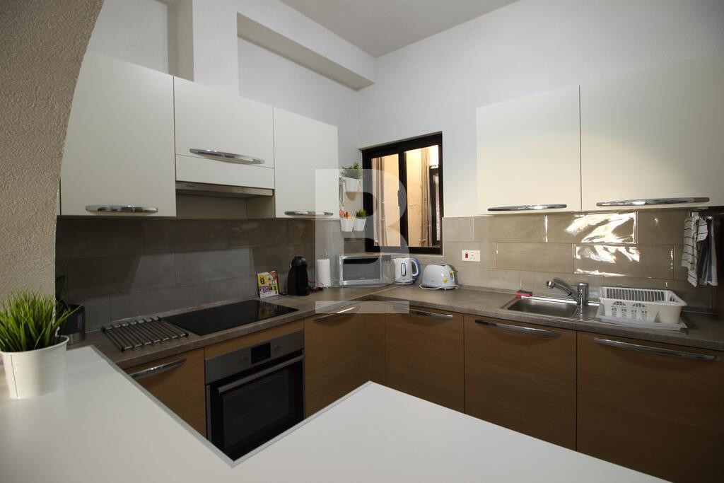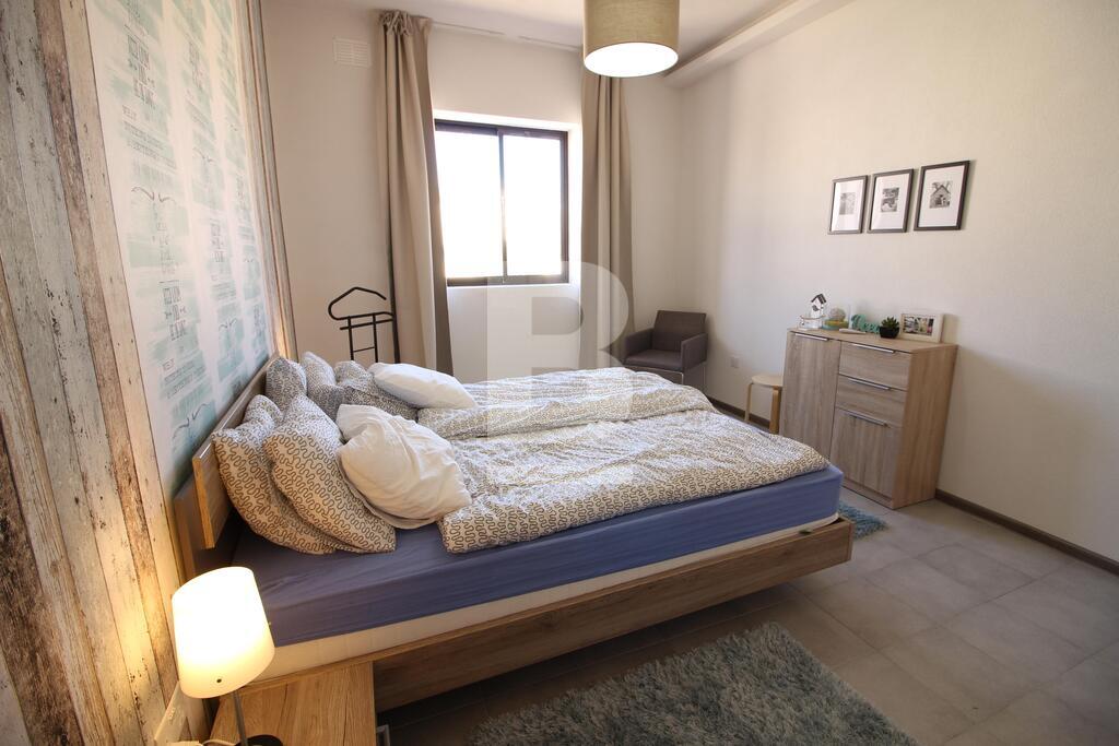 Designer finished and well furnished 2nd floor 120 sqm apartment situated in a peaceful residential street just off Spinola Bay. Bright and spacious accommodation comprises a large central entrance hallway, living / dining room with adjoining kitchen, front balcony, 3 double bedrooms - two with en-suite, and main bathroom. This property has just been modernized to the highest standards and it is fully air-conditioned throughout.