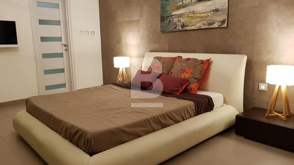 A very bright three bedroom apartment with a spacious front terrace enjoying open sea views of Balluta Bay and country views of Balluta Valley. This 140 sqm apartment is highly finished with quality modern furnishings and consists of a large open plan Kitchen, living and dining area, box/laundry room, Main bathroom, 2 double bedrooms (main with en-suite) as well as a spacious study which converts into a third bedroom. The apartment is air-conditioned throughout and enjoys top amenities including dishwasher, tumble dryer, solar water heating, fireplace & wine fridge. A 1 car garage in the same block is being offered optional.