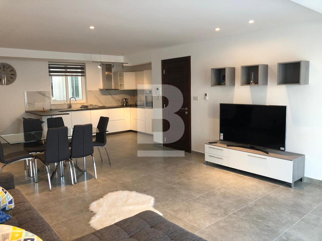 A nicely finished bright 135 sqm apartment, situated in Swieqi within walking distance to all amenities and close to the popular locations of Sliema and St Julians. An attractive layout comprising of a larger than usual front balcony, and entrance leading to a fully fitted high end kitchen/living/dining area, with 3 bedrooms, and a separate utility room. Two double bedrooms (with very large en-suite , and a single bedroom) Property is complimented with 2 bathrooms, is air conditioned, with dishwasher, induction hob, washing machine & tumble dryer.