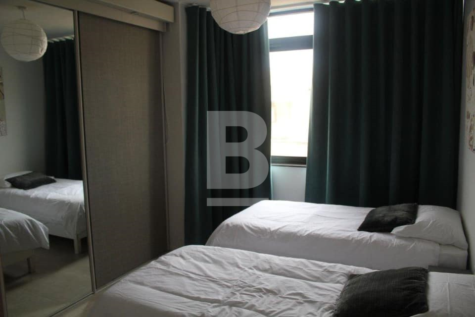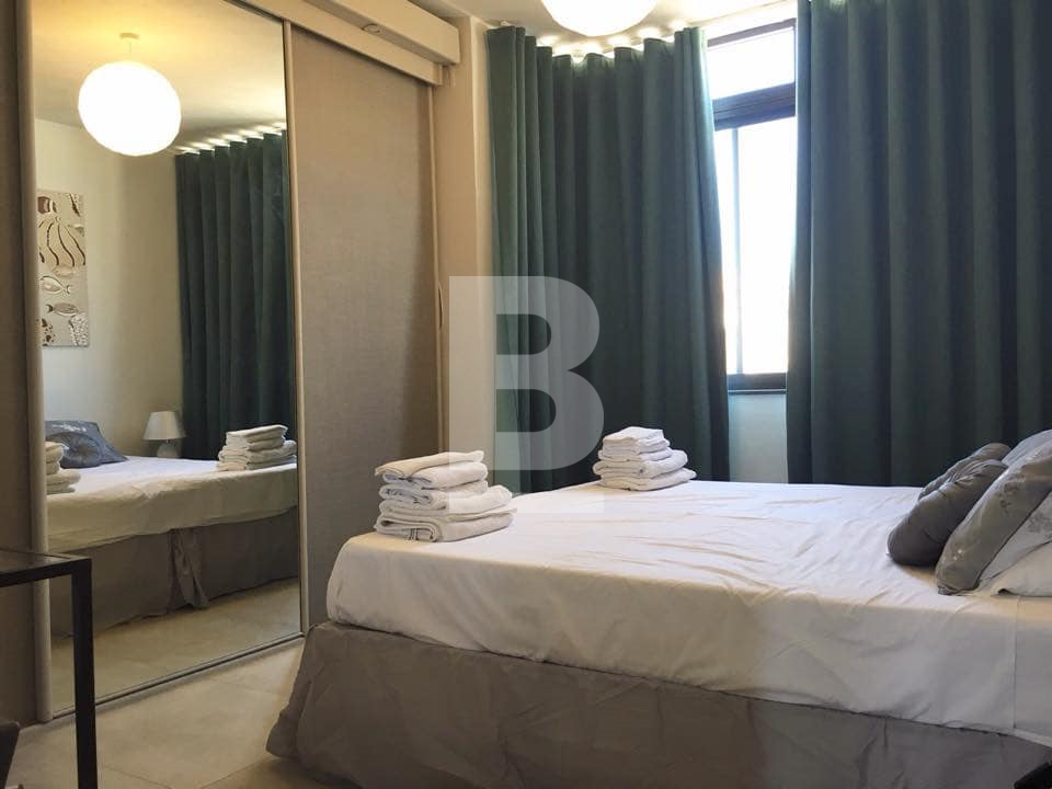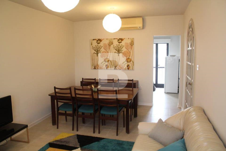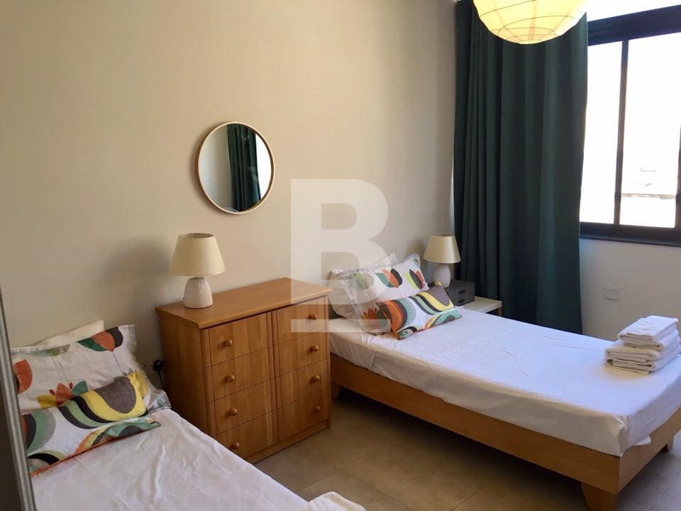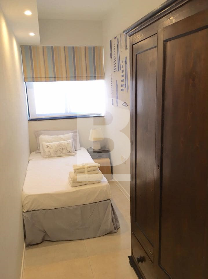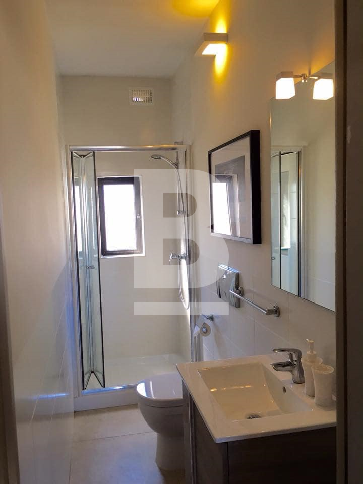A very bright & airy 90 sqm top floor recently converted apartment in a block of only 4, located in the heart of Sliema just off Dingli Street. This apartment enjoys a squarish layout and is conveniently situated a couple of minutes' walk from the seafront and close to all amenities such as the pharmacy, grocery, public transport and restaurants. This property's layout consists of a kitchen with balcony, a spacious living/dining room, 2 large double bedrooms, a guest-room/study a large main bathroom and a shower room. All rooms enjoy large windows allowing lots of natural light to flow through. Complementing this apartment is a private washroom/boxroom with direct access from the inside (above the apartment) and use of roof. New ACs have been recently installed in the main bedroom and living/dining room.