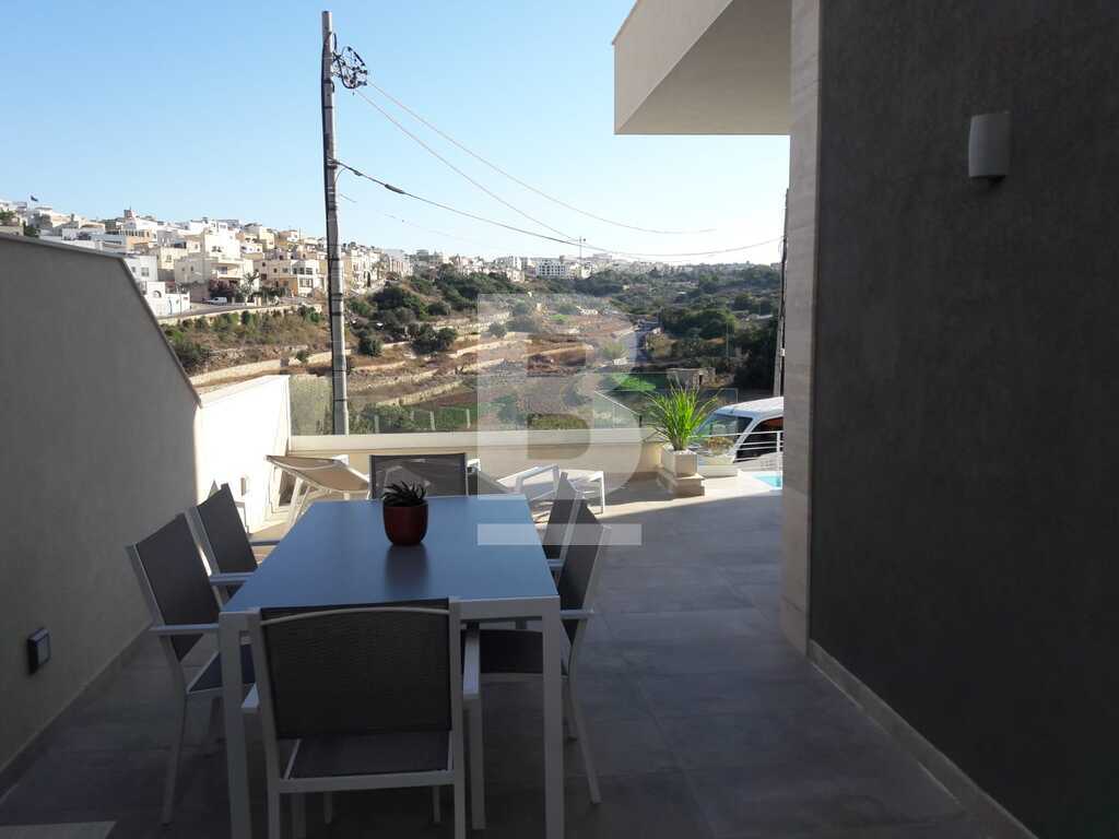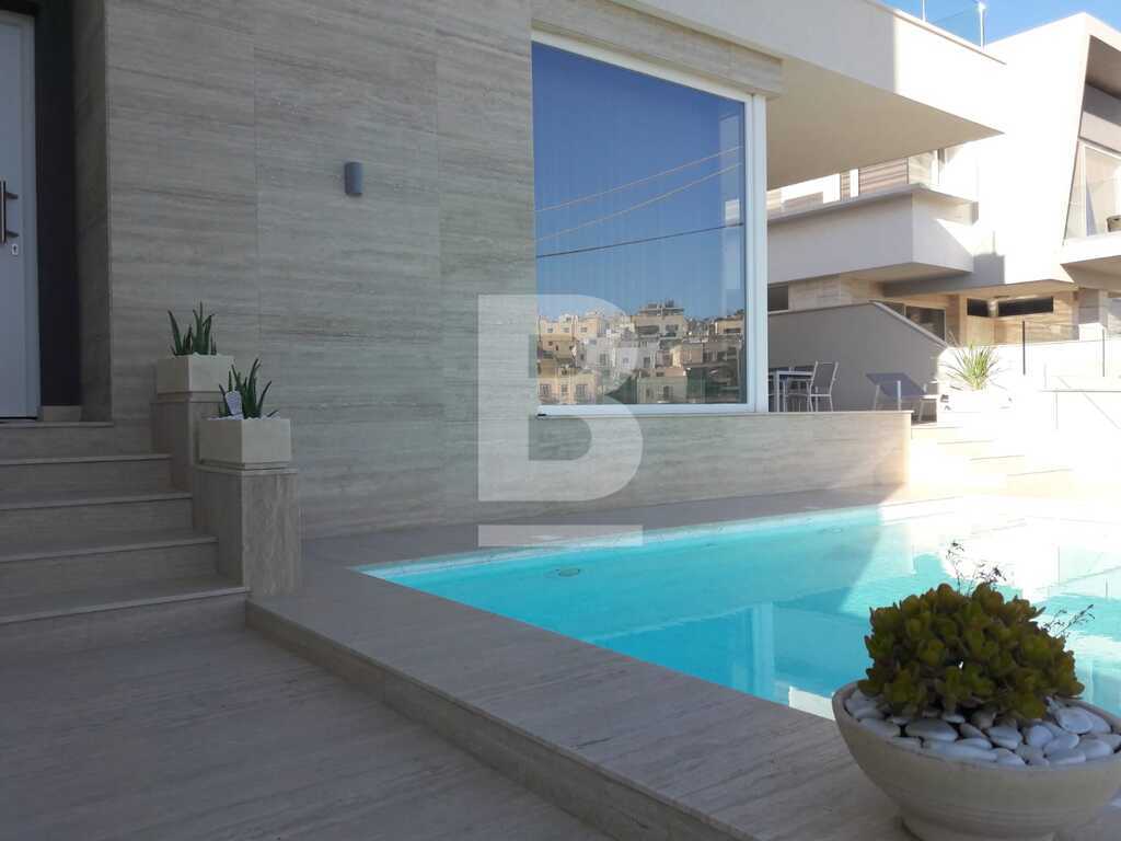 An absolutely magnificent and stunning VILLA with pool, situated in one of the finest residential area’s enjoying direct country and valley views. Accommodation comprises a remarkable open plan fully fitted and equipped state of the art kitchen / living / dining area enjoying natural sun light from its south / west orientation and lovely views from every angle, cloakroom and guest toilet all leading to a spacious outdoor area with ample deck area and swimming pool. Three double bedrooms upstairs - all with en-suite bathrooms and walk in wardrobes. On the top floor one has ample space for a study / studio, laundry area leading onto a private roof. At basement level there is a fully furnished and equipped flatlet with an open plan kitchen / living / dining, double bedroom and bathroom interconnecting with the main house. Property is fully air-conditioned, complimented by a lift from basement level right up to the top floor. 4 car garage and a car port. One of the finest properties available on the market in an excellent location.