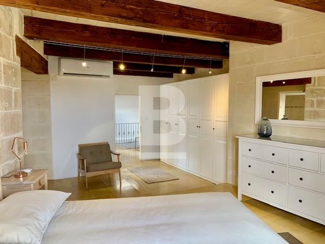 Converted HOUSE OF CHARACTER, located on the outer rim of Gharghur Village, this property commands splendid country, valley and distant sea views across Madliena. The property comprises a welcoming entrance hall, leading to a courtyard having a wine cellar, guest toilet, open plan living dining area, separate fully equipped kitchen all overlooking the courtyard. A spiral stair case leading to a bedroom with en-suite and another staircase leading to the first floor level having two double bedrooms both with en-suites. One of which leads to a further room at roof level equipped with a kitchenette leading to a roof terrace, ideal for entertaining, and enjoying country views. This fantastic finished property combines the charm of character with modern comforts.