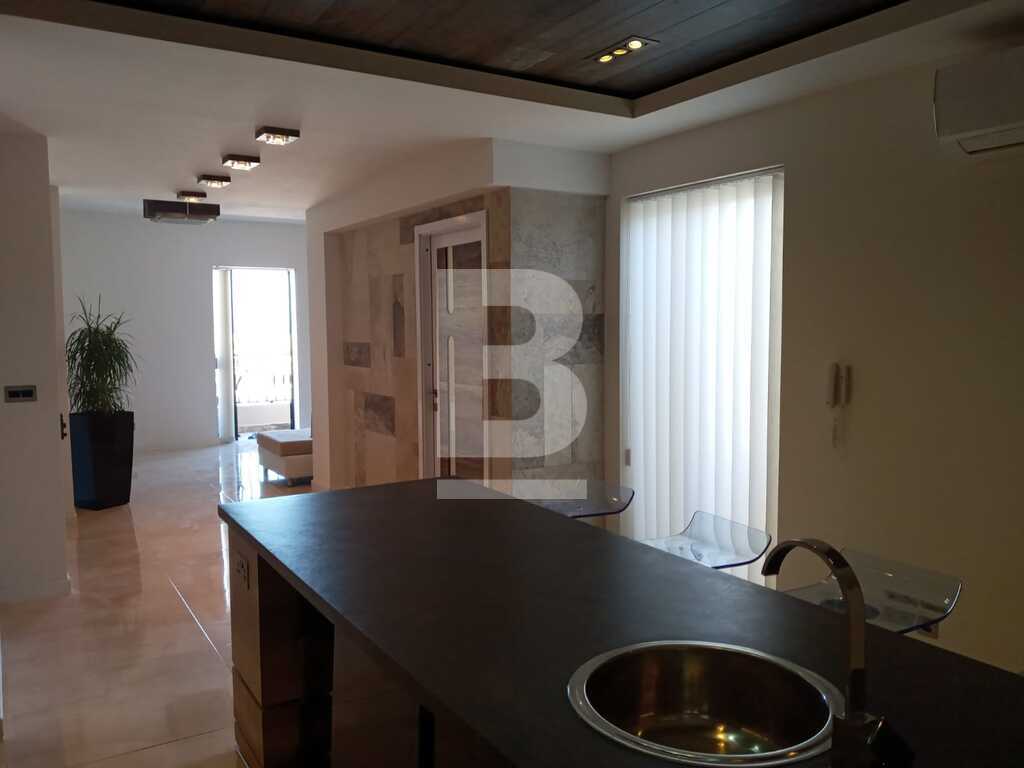 A state of the art finished 4th Floor 2 double bedroom apartment situated in a residentiial area in Marsascala, close to most amenities and public transport. Property is luxuriously finished and consists of a fully fitted kitchen, a guest bathroom, living and dining area leading onto a bright balcony with side seaviews. No expense has been spared in this property and is fully equipped with an air-conditioning unit in the living area and includes TV and washing machine.