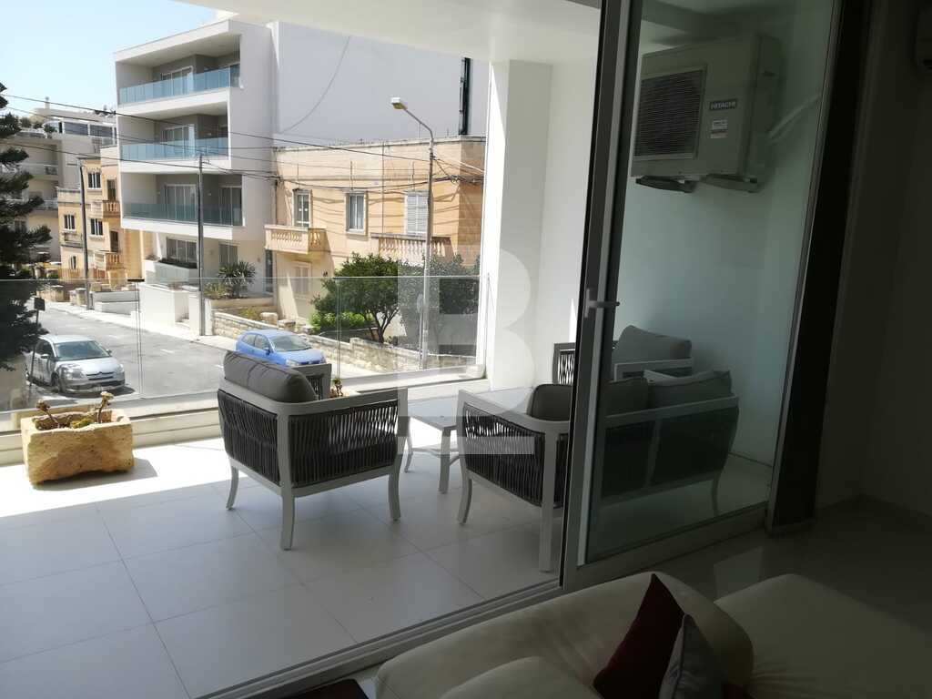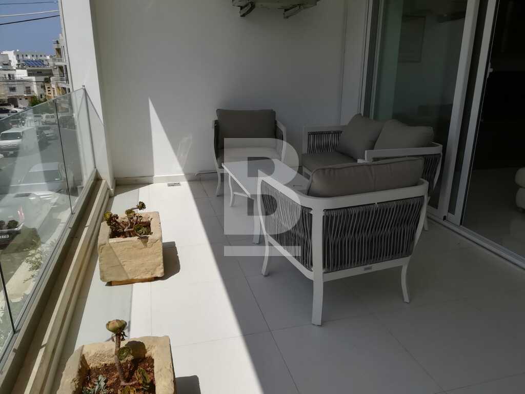 A modern, stylish, very spacious, bright, fully furnished and equipped apartment comprising of one double, twin bedroom, open plan kitchen/living/dining, two bathrooms - one main and one en-suite in main bedroom, large front terrace with outdoor furniture and balcony at the back. One of the spare bedrooms can be used as an office or study room if required. Appliances consist of washing machine, tumble dryer, fridge/freezer, dishwasher, induction cooker, built-in fan oven and microwave. The apartment is fully air conditioned and served by lift and intercom. Optional 2-car spaces available. The apartment is centrally located, with Spinola Bay only a 10-minute walk away.
