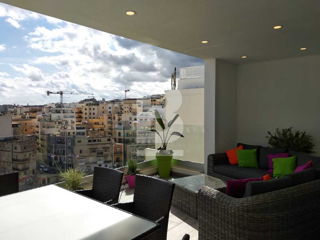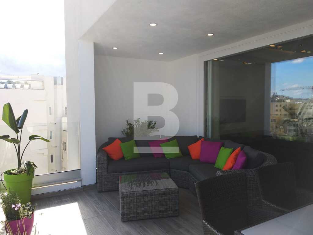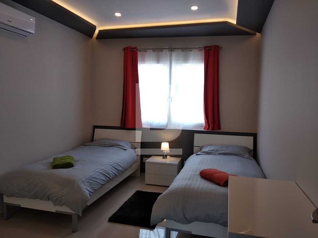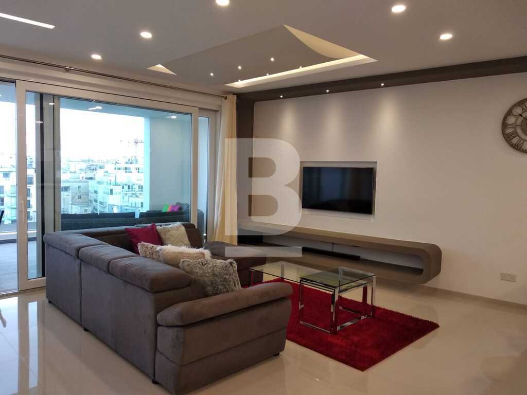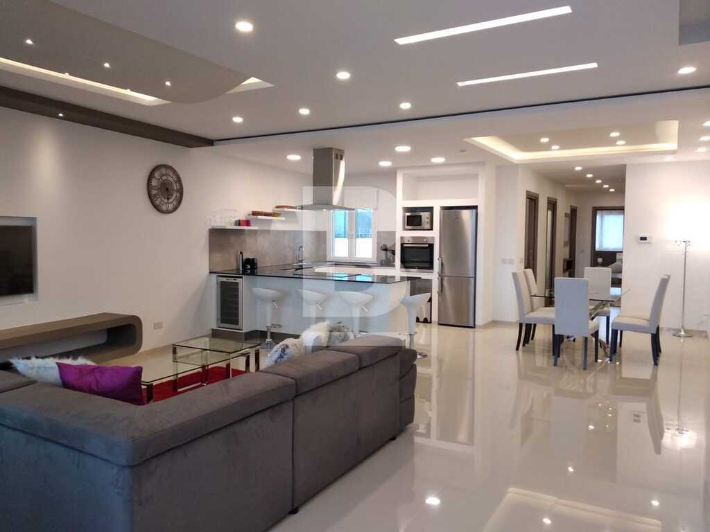 A lavishly designed 4th-floor apartment comprising an open living/dining/kitchen area leading to a sizeable dining veranda overlooking the amazing view of Spinola Bay. Situated in a very central location near restaurants, main hotels, casinos etc. Fully fitted kitchen with electric oven/hob, fridge/freezer, microwave and a wine cooler. Large sitting/dining room with L shaped couch, plasma TV and internet and property is equipped with A/Cs throughout. Fully insulated walls and floor that keeps the property very comfortable throughout the year. Accommodation consists of a main bedroom with en-suite facilities and a twin bedroom. There is also a laundry room with storage space. An optional garage space is available.