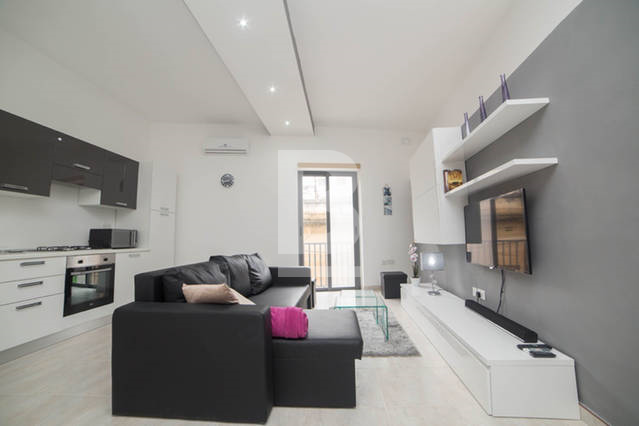 Fully furnished, modern 2 bedroom apartment on the 1st floor, centrally located in St Julians, just bordering Sliema and within walking distance to all amenities. Property comprises of open plan kitchen / living / dining leading onto a balcony, double bedroom with back balcony, single bedroom and main bathroom. Property includes air-conditioning, washing machine and TV. No Lift.
