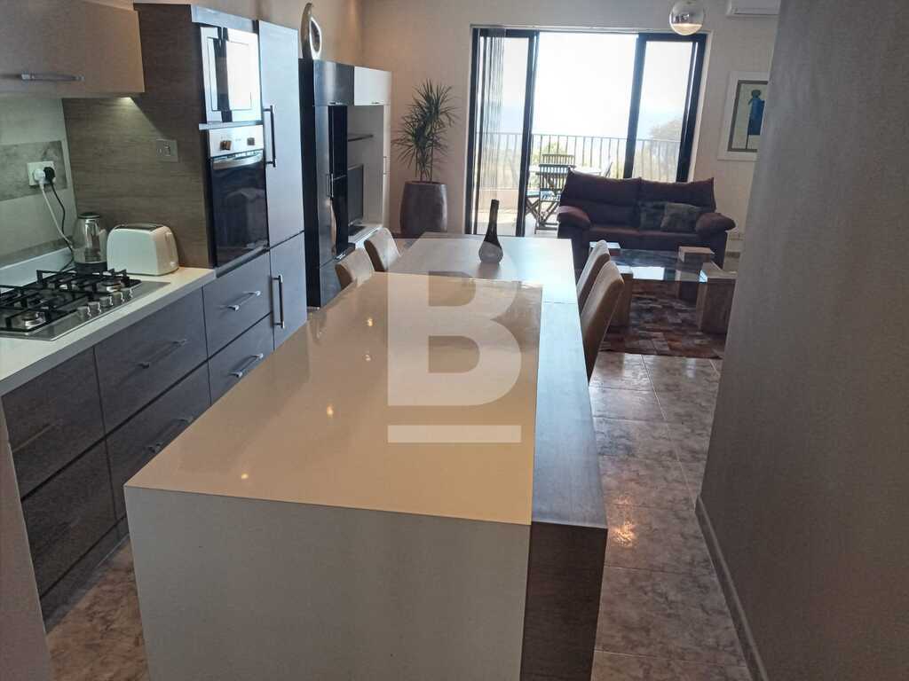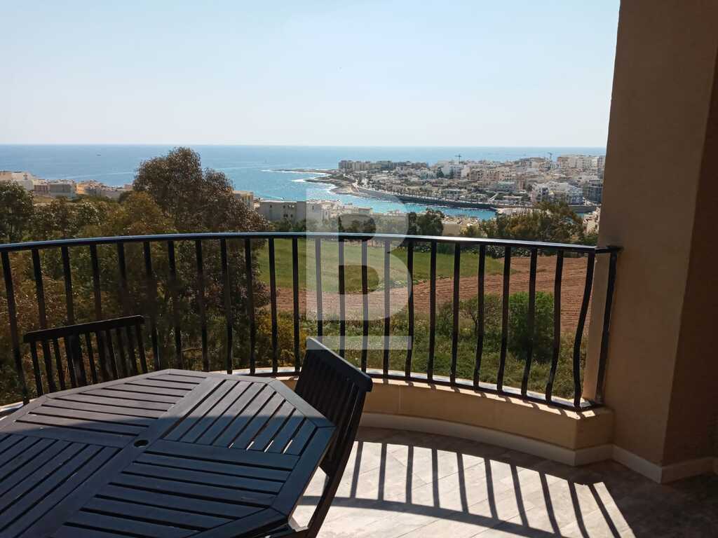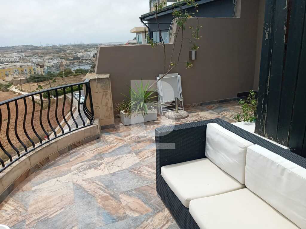 A bright and spacious 1 bedroom Penthouse situated in a quiet residential area of Zonqor in Marsascala. This property consists of a fully equipped kitchen/living dining leading onto a well sized front terrace with stunning sea and country views. A nicely finished 1 double bedroom with A/C, 1 main bathroom and also a back terrace.