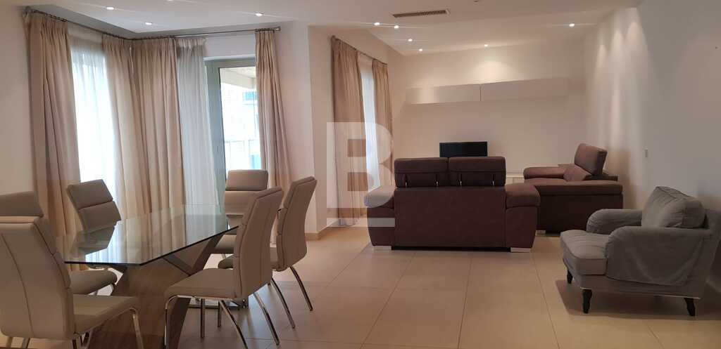 Corner Large and bright 6th floor apartment located in the sought after development of Tigne Point. Having a large terrace with open views overlooking the piazzetta as well as side sea views is what makes this property different, having a cosy as well as secure feeling that would make the ideal home. The large Living Space has been recently furnished with new dining table and sofas, it's spacious kitchen comes fully equipped with all that one needs, including energy saving appliances, dishwasher and hard wearing kitchen counter tops. Moving onto the sleeping quarters, one finds 3 double bedrooms, one of which has it's en-suite bedroom as well as spacious walk in wardrobe. Additional guest powder room facilities and another main bathroom can also be used. The 2 guest bedrooms both have the equivalent size and come equipped with double beds and large wardrobes having plenty of storage space available. This property has a separate laundry room with washing machine and tumble dryer as well as 2 car spaces available. Viewing is highly recommended.