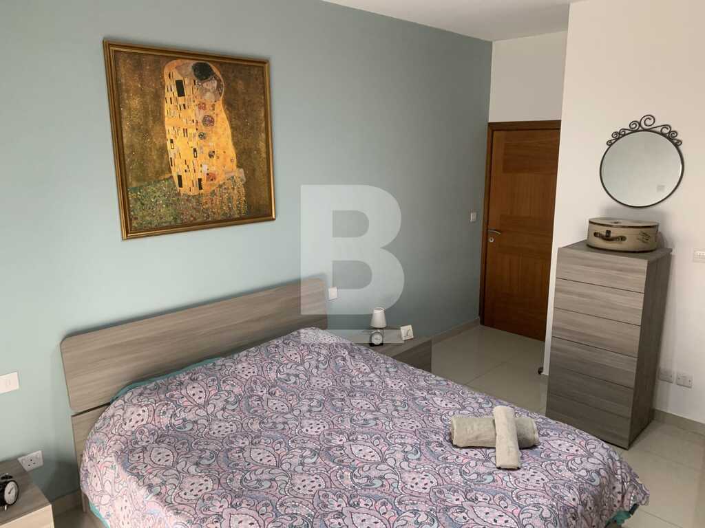 A well presented 3rd floor 2 bedroom 2 bathroom apartment in Gharghur equipped with modern finishings and offered fully furnished. Property consists of a large open plan kitchen/living/dining area with a fully fitted kitchen, a front balcony, a main family bathroom, 1 double bedroom equipped with an en-suite, a further single bedroom and a back balcony. Block served with lift, offered fully furnished and complete with AC throughout, TV and washing machine,