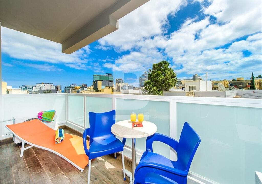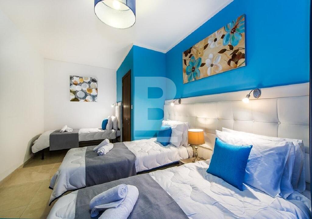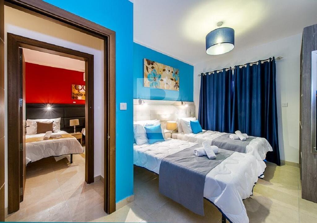SWIEQI - Highly finished and furnished, self-catering accommodation in the sought after area of St Julian’s, close to all amenities. These apartments are all tastefully finished to commodity standards and are equipped with modern furnishings. Additionally, all properties have a balcony with street or in-land views and are furnished with outdoor facilities. All apartments are fully air-conditioned* and use of cooling and heating system, is coin operated. Property can be accessed with a lift and WI-FI is available in all of the buildings. This 2-bed apartment is equipped with a kitchenette having a stove, oven, toaster, fridge & utensils , combined with a TV lounge area, seating and dining area, and two bathrooms. Bedrooms are located with triple beds in two rooms and a combined balcony with street views. This apartment can comfortably accommodate 6 guests, up to a maximum of 8.