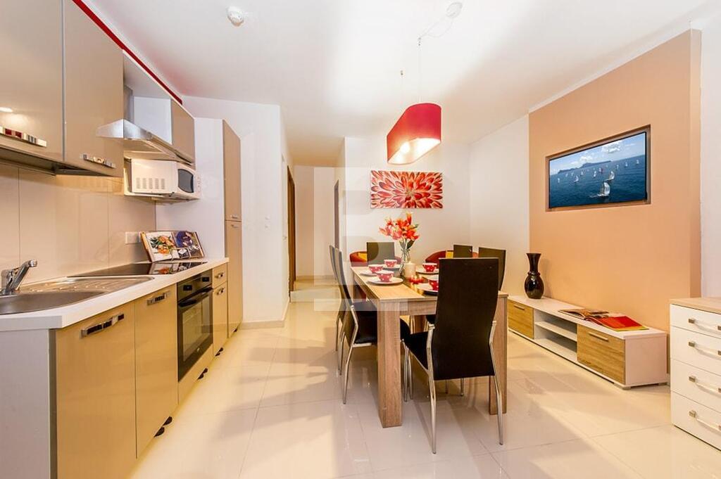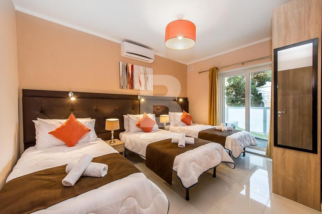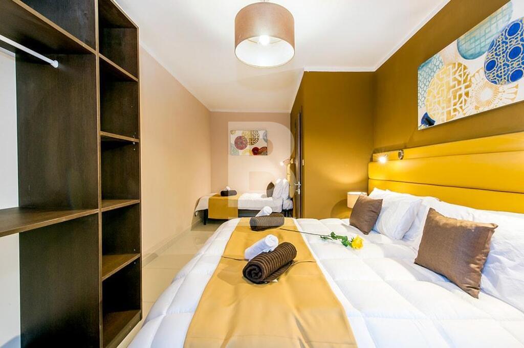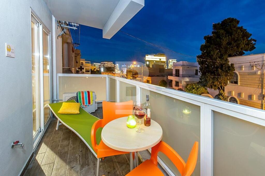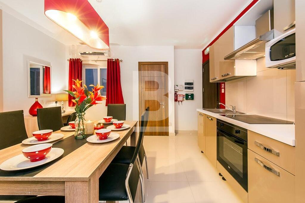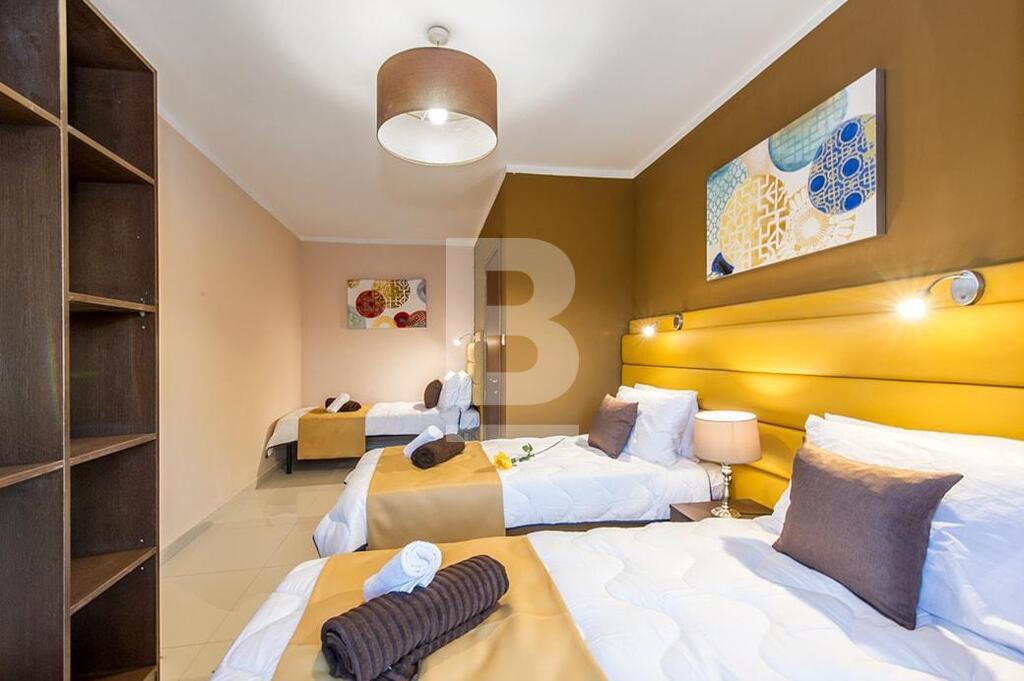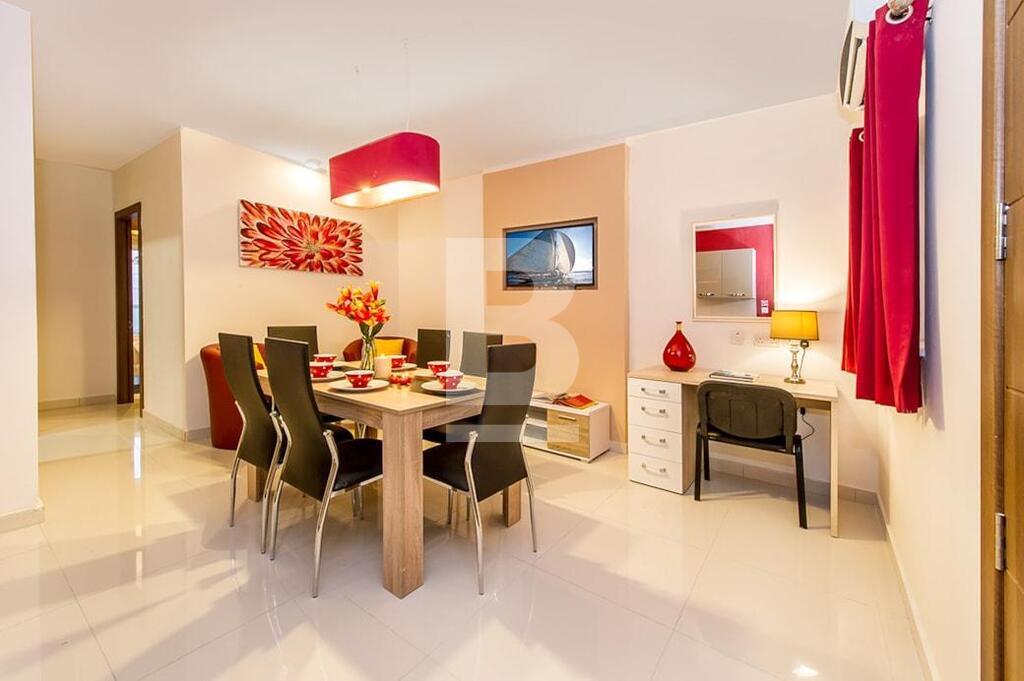SWIEQI - Highly finished and furnished, self-catering accommodation in the sought after area of St Julian’s, close to all amenities. These apartments are all tastefully finished to commodity standards and are equipped with modern furnishings. Additionally, all properties have a balcony with street or in-land views and are furnished with outdoor facilities. All apartments are fully air-conditioned* and use of cooling and heating system, is coin operated. Property can be accessed with a lift and WI-FI is available in all of the buildings. This 2-bed apartment is equipped with a kitchenette having a stove, oven, toaster, fridge & utensils , combined with a TV lounge area, seating and dining area, and two bathrooms. Bedrooms are located with triple beds in two rooms and a combined balcony with street views. This apartment can comfortably accommodate 6 guests, up to a maximum of 8.