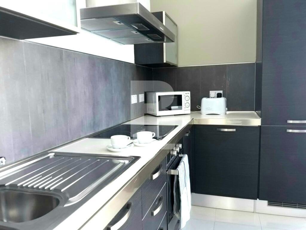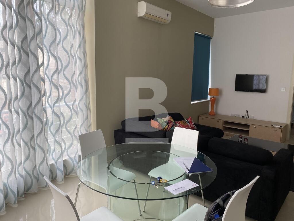 A recently refurbished 1 bedroom apartment only 5 minutes away from the sea. This apartment features an open plan fully equipped kitchen, living and dining area with an laundry closet. Squarish layout and full of natural light, the apartment comes equipped with a washing machine, TV and is fully air-conditioned. The apartment forms part of a modern and luxurious block of apartments that is served with a lift and interconnected with its own carport.