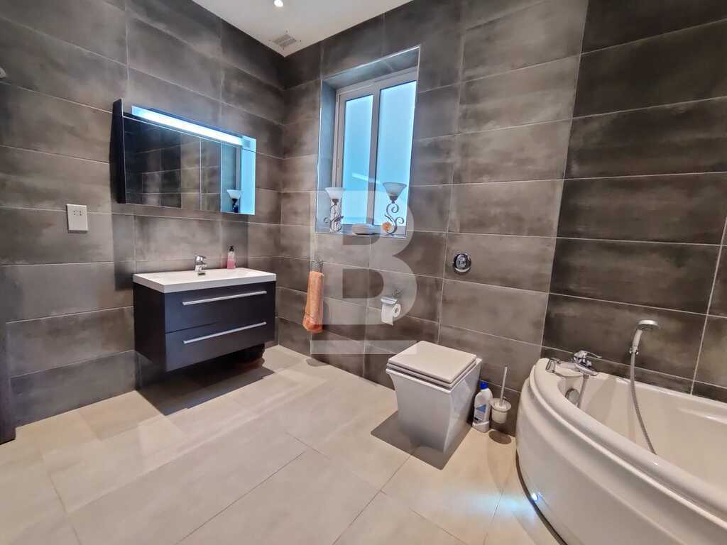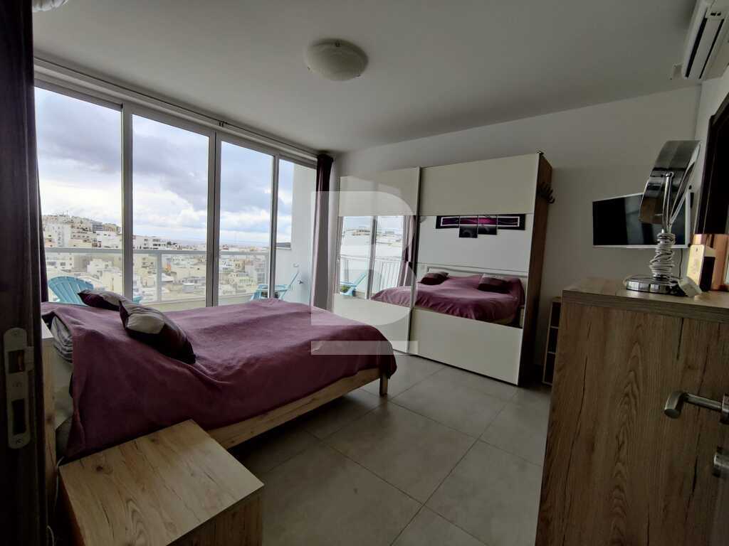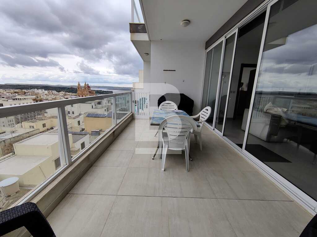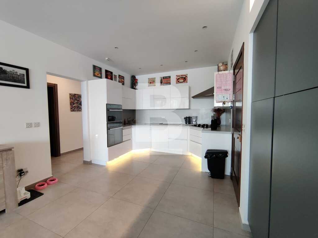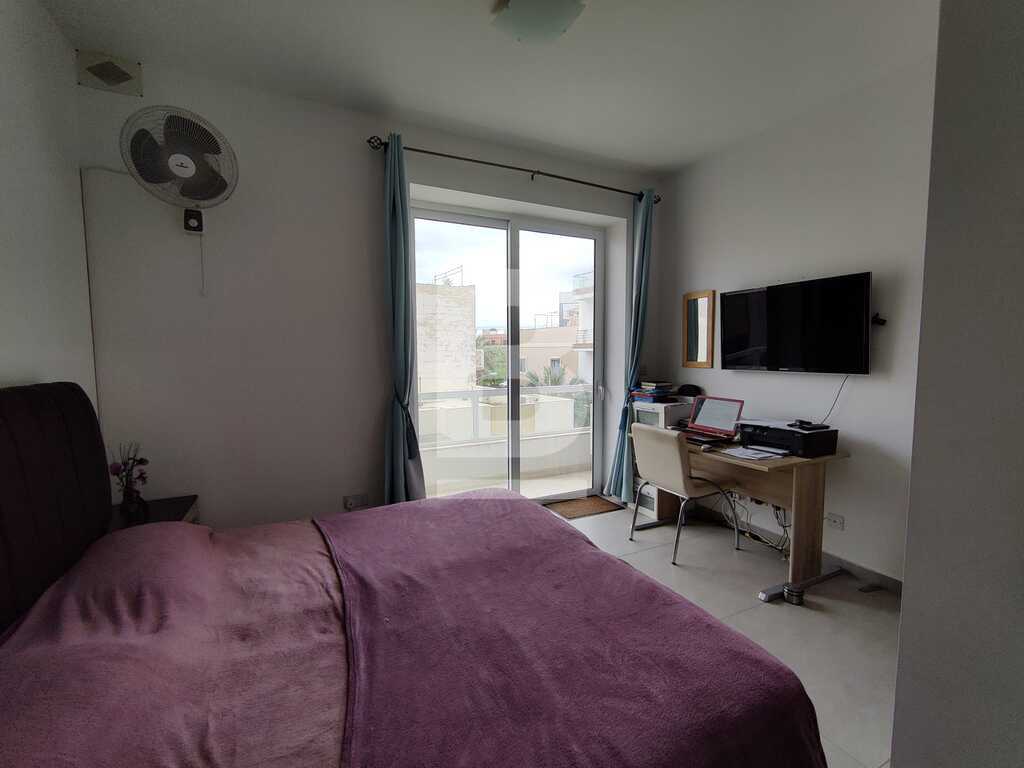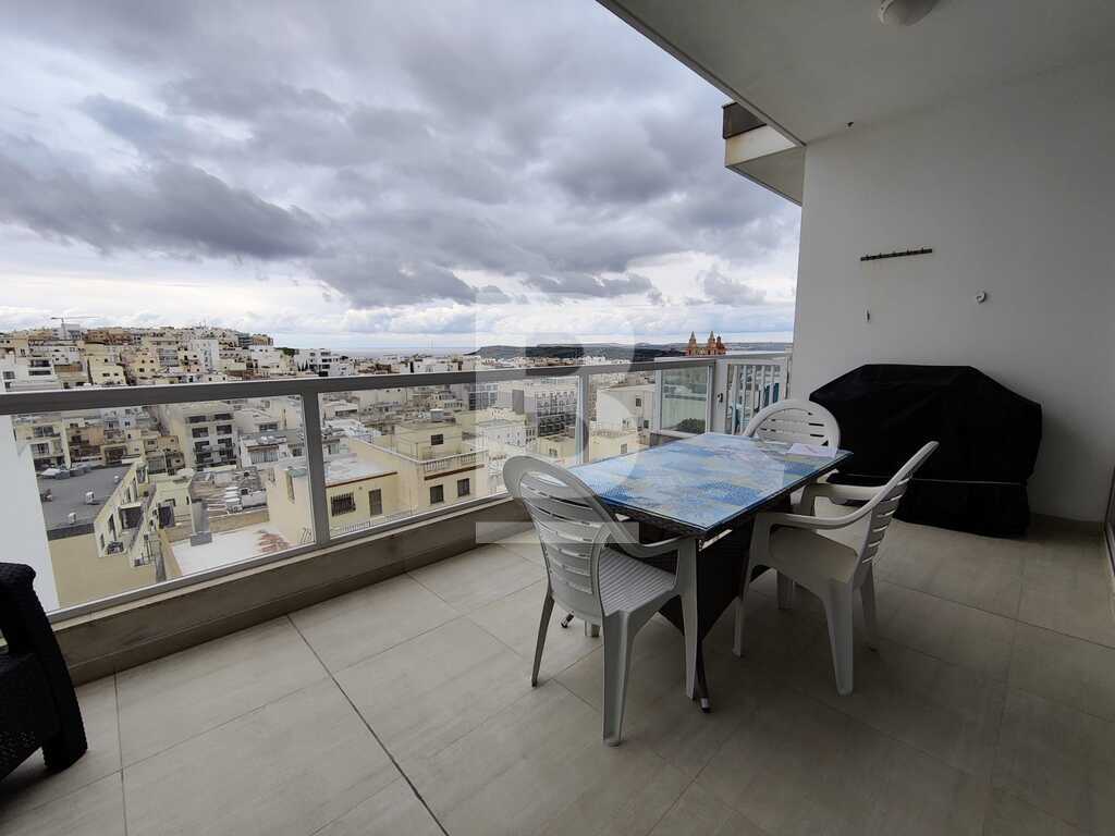 Modern, highly finished and fully air-conditioned, second floor apartment in a block of 3 units and served with a lift. Layout comprises of a large open-plan kitchen/living/dining with a large and equipped front terrace having open sea views, a main bedroom with an ensuite shower room and front terrace, main bathroom equipped with a bath tub and shower, box room, another 2 double bedrooms (one with an ensuite shower room and the other with a back balcony).