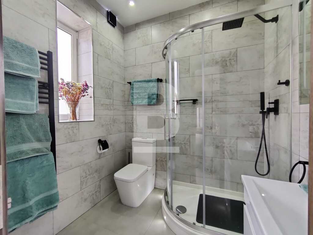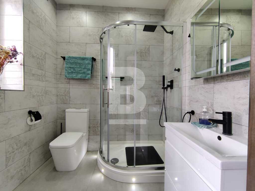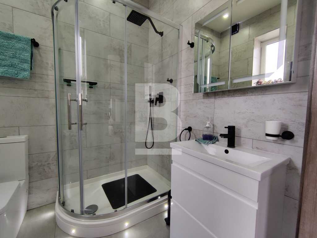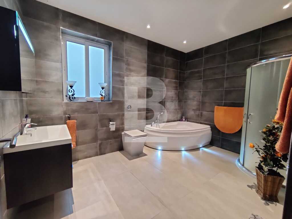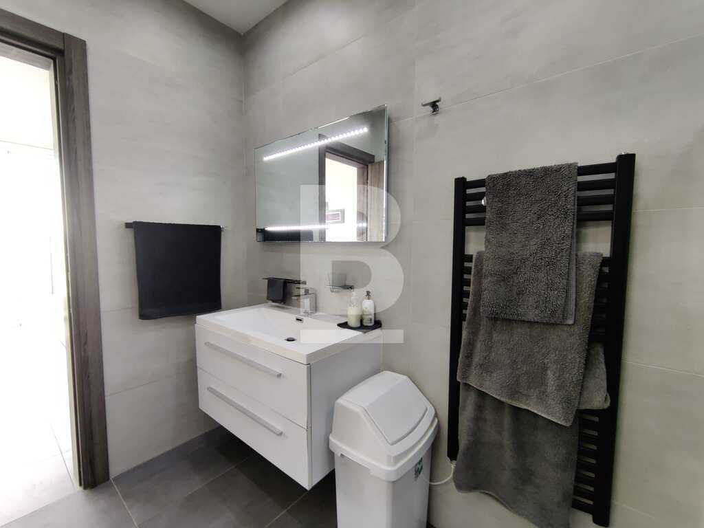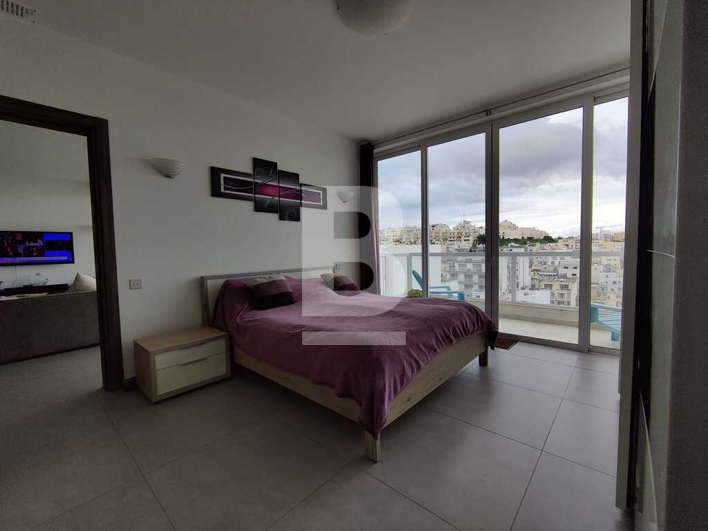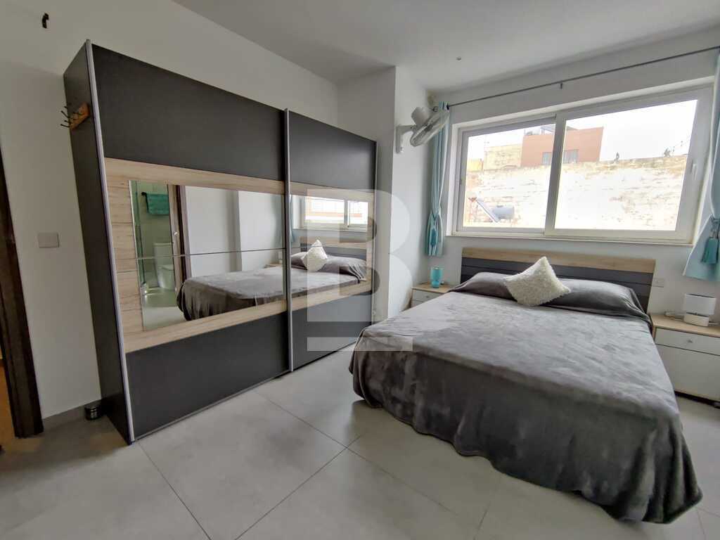 Modern, highly finished and fully air-conditioned, second floor apartment in a block of 3 units and served with a lift. Layout comprises of a large open-plan kitchen/living/dining with a large and equipped front terrace having open sea views, a main bedroom with an ensuite shower room and front terrace, main bathroom equipped with a bath tub and shower, box room, another 2 double bedrooms (one with an ensuite shower room and the other with a back balcony).