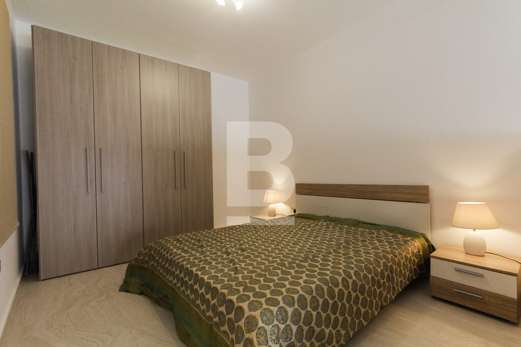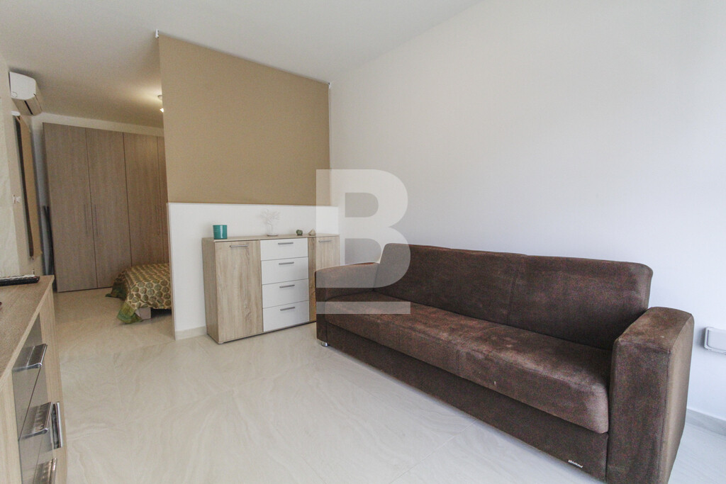 A well designed, highly finished , comfortable ground floor 1 bedroomed apartment in a new, quiet block close to Spinola Bay. Contemporary, modern furniture. Excellent location.1 double bedroom , 1 bathroom . Highly finished, modern contemporary furniture. Air-conditioning throughout, flat screen TV, washing machine and a fully equipped kitchen. Close to all amenities, bus service, shops, restaurants and sea. Use of communal terrace included . Wifi included .