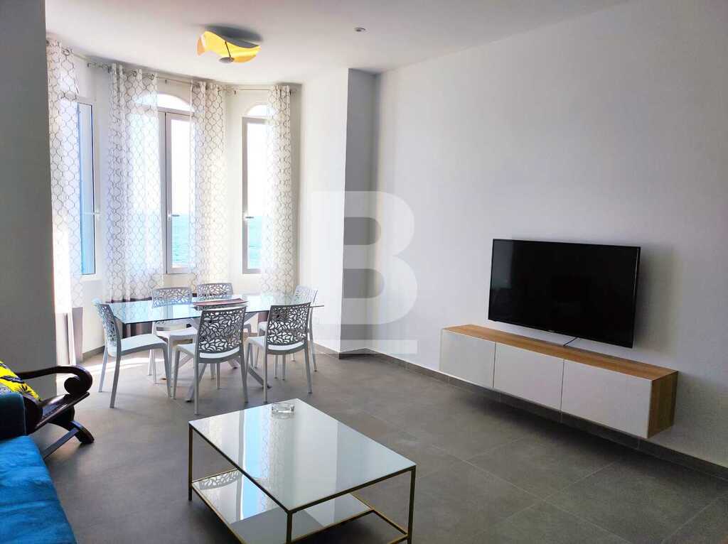 A bright and spacious fully furnished 3rd floor seafront apartment located enjoying breathtaking views. The accommodation comprises a kitchen, sitting/dining, a study area, washroom, 3 double bedrooms all with en-suite facilities and walk-in in main bedroom, guest toilet. Property is fully air-conditioned and includes all extras.