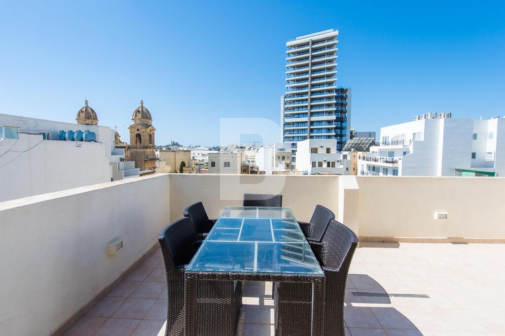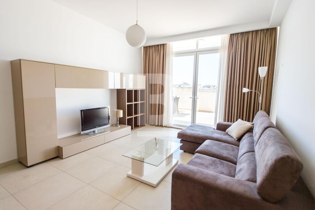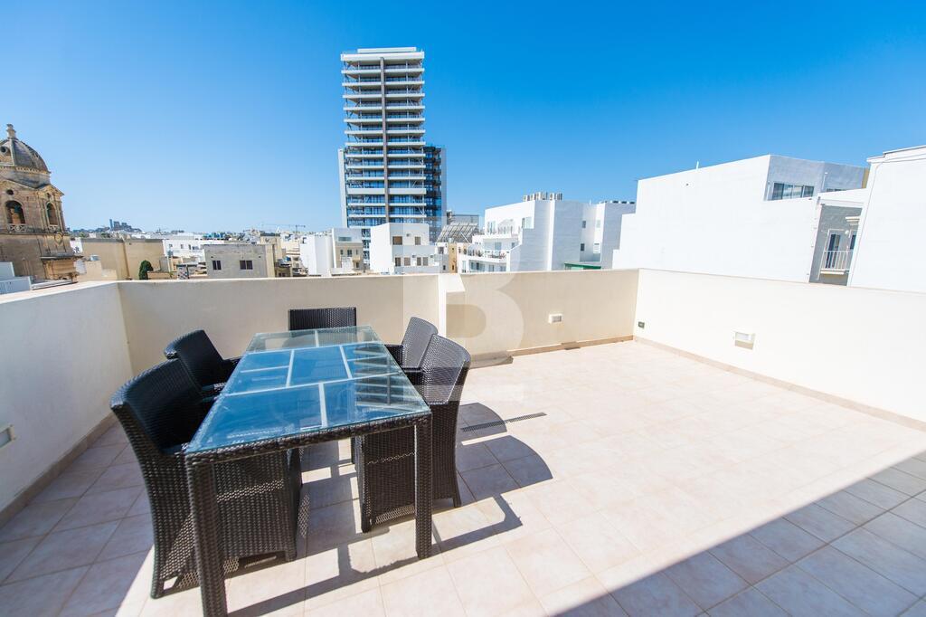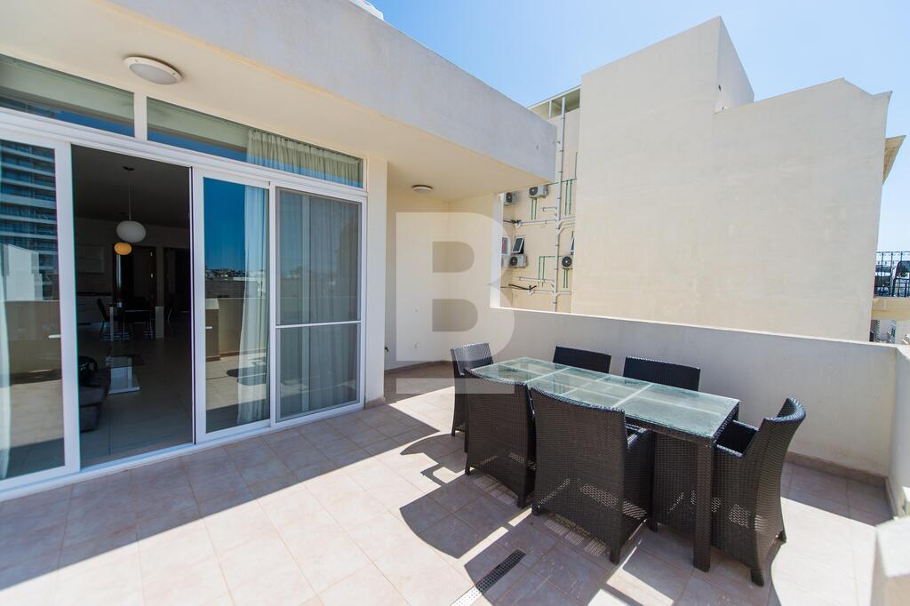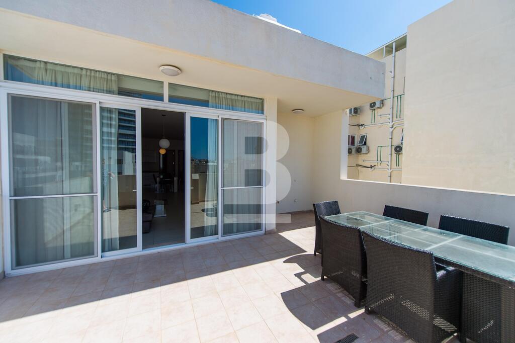 A modern, well-furnished and fully equipped fourth floor penthouse measuring 120 sqm and situated just off Manoel Island and Sliema Creek. Property consists of an open plan kitchen / dining / living area leading onto a nice front terrace, two bedrooms, shower room and spacious back balcony. This apartment is equipped with air-conditioning units, dishwasher, washing machine, LCD 40" TV and intercom.