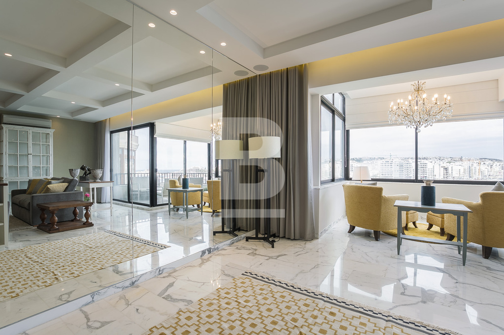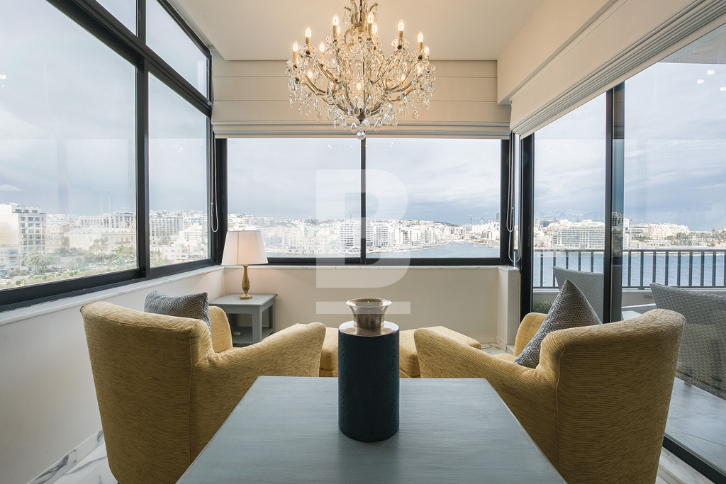 A luxuriously finished sixth-floor seafront apartment situated on the sunny side of Tower Road overlooking Independence Gardens. Property consists of an imposing entrance with a large open plan sitting/living/dining leading onto a well-sized open terraces, enjoying fantastic sea views with the picturesque Sinola & Balluta bays in the background, fully fitted kitchen/breakfast area with pantry, 3 well-sized double bedrooms and 3 bathrooms (2 en-suite facilities). This apartment includes a high spec finish and is being sold fully furnished and equipped. Further complimenting this property is an underlying 2-car garage.